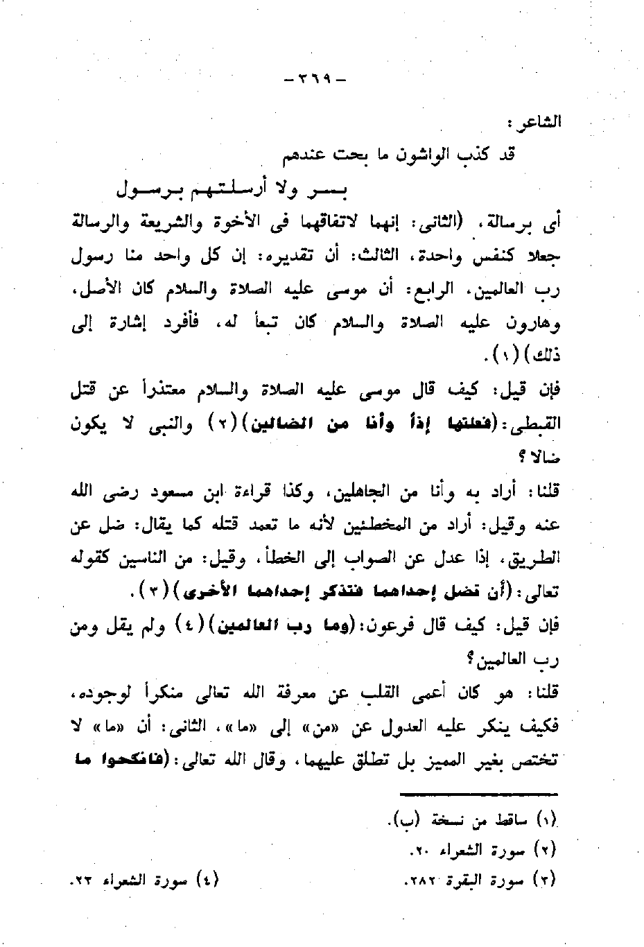 أي برساله، الثانى: أنهما لا تفاقهما في الأخوة والشريعة والرسالة جعلا كنفس واحده، الثالث: أن تقديره: أن كل واحد منا رسول رب العالمين، الرابع: أن موسي عيله الصلاة والسلام كان الأصل وهارون عليه الصلاه والسلام كان تبعاً له فأفرد إشاره إلى ذلك.