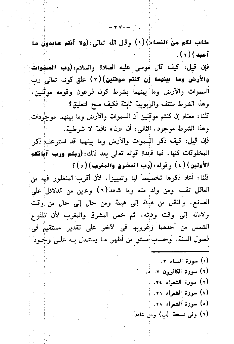 فإن قيل: كيف قال موسي عليه الصلاه والسلام: (رَبُّ السَّمَاوَاتِ وَالْأَرْضِ وَمَا بَيْنَهُمَا إِنْ كُنْتُمْ مُوقِنِينَ) علق كونه تعالى رب السموات والأرض وما بينهما بشرط كون فرعون وقومه موقنين وهذا الشرط منتف والربوبيه ثابته فكيف صح التعليق؟