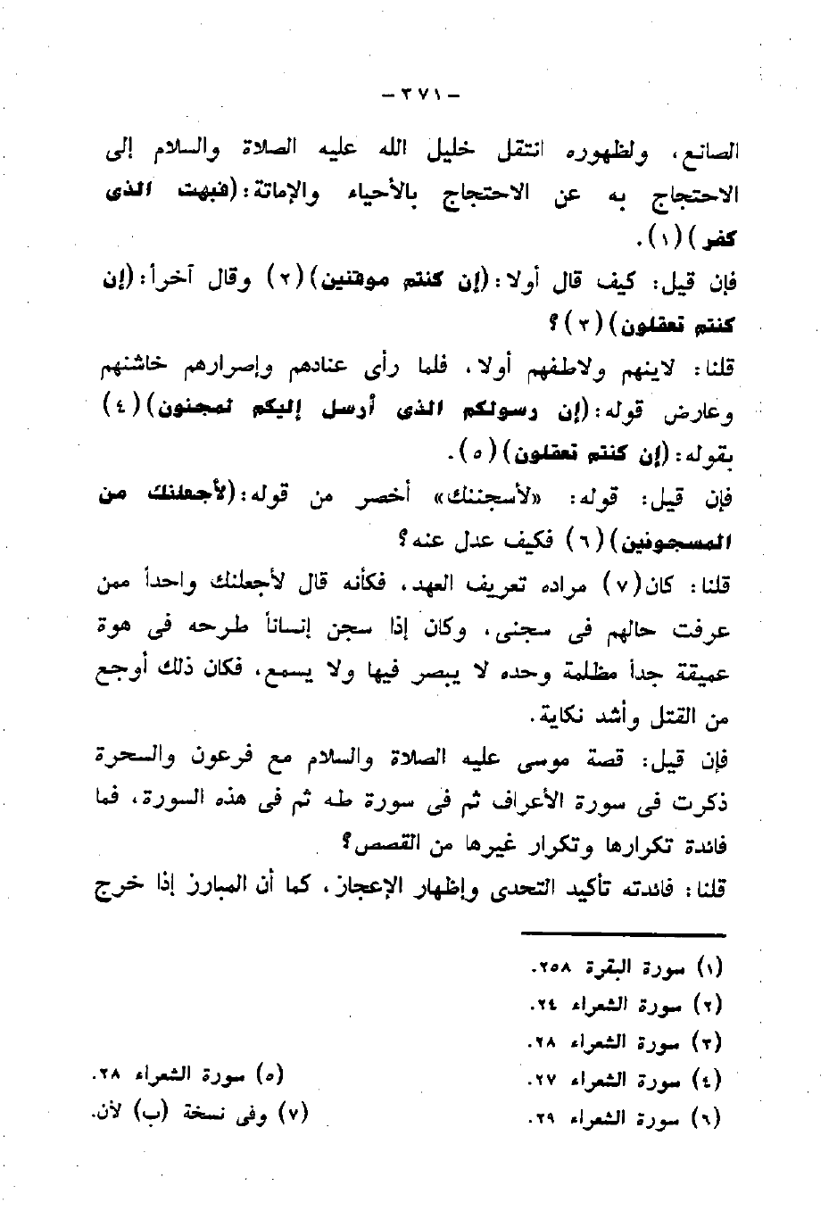 فإن قيل: قصة موسي عليه الصلاة والسلام مع فرعون والسحرة ذكرت في سورة الاعراف ثم في سورة طه ثم في هذا السورة فما فائدة تكرارها وتكرار غيرها من القصص؟