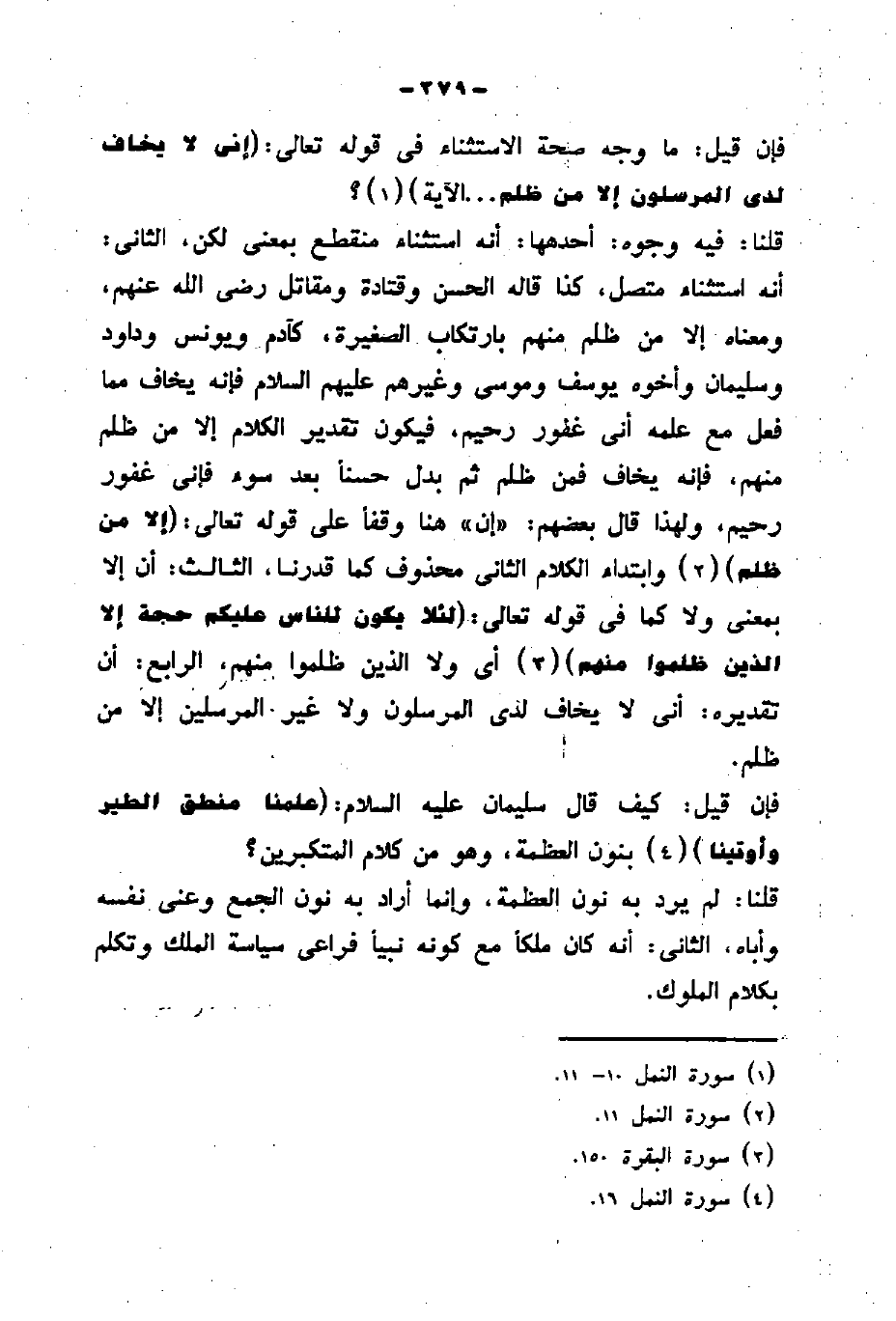 وسليمان وأخوه يوسف وموسى وغيرهم عليهم السلام فإنه يخاف مما فعل مع علمه أنى غغور رحيم، فيكون تقدير الكلام إلا من ظلم منهم، فإنه يخاف فمن ظلم ثم بدل حسناً بعد سوء فإنى غفور رحيم، ولهذا قال بعضهم: "إن " هنا وقف على قوله تعالى: (إلا من ظلم) وابتداء الكلام الثانى محذوف كما قدرنا، الثالث: أن إلا بمعنى ولا كما في قول تعالى: (لِئَلَّا يَكُونَ لِلنَّاسِ عَلَيْكُمْ حُجَّةٌ إِلَّا الَّذِينَ ظَلَمُوا مِنْهُمْ) أي ولا الذين ظلموا منهم.