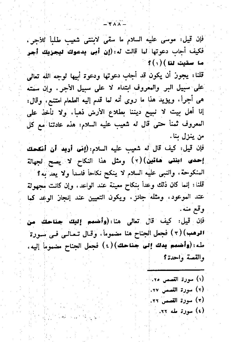 قلنا: يجوز أن يكون قد أجاب دعوتهما ودعوة أبيها لوجه الله تعالى على سبيل البر والمعروف ابتداء لا على سبيل الأجر، وإن سمته هى أجراً، ويؤيد هذا ما ووى أنه لما قدم اليه الطعام امتنع، وقال: إنا أهل بيت لا نبيع ديننا بطلاع الأرض ذهباً، ولا نأخذ على