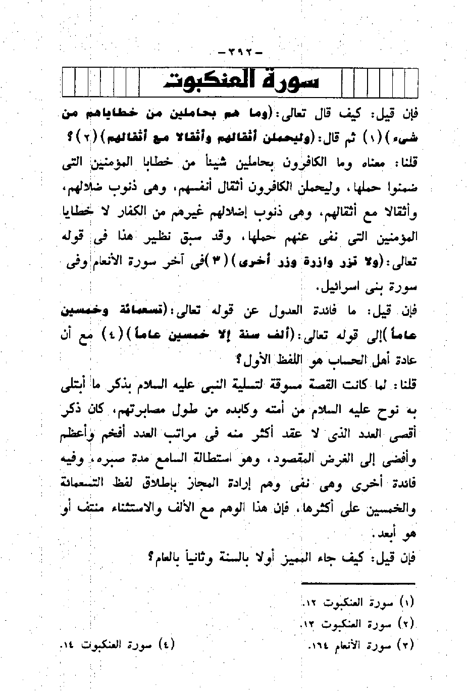 فإن قيل: ما فائدة العدول عن قوله تسعمائة وخمسين عاما إلى قوله تعالى: (أَلْفَ سَنَةٍ إِلَّا خَمْسِينَ عَامًا) مع أن عادة أهل الحساب هو اللفظ الأول؟