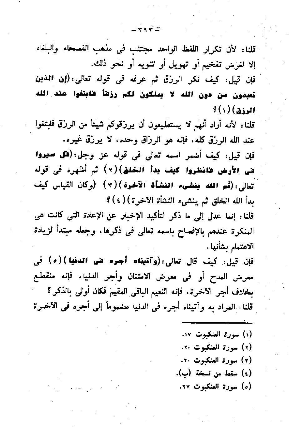 فإن قيل: كيف نكر الرزق ثم عرفه في قوله تعالى: (إِنَّ الَّذِينَ تَعْبُدُونَ مِنْ دُونِ اللَّهِ لَا يَمْلِكُونَ لَكُمْ رِزْقًا فَابْتَغُوا عِنْدَ اللَّهِ الرِّزْقَ) ؟