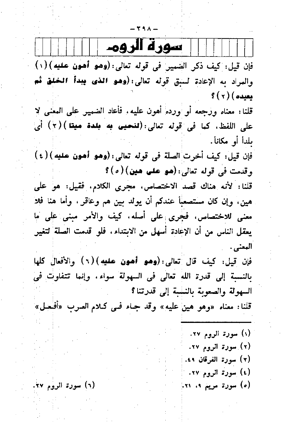 قلنا: معناه ورجعه أو ورده أهون عليه، فأعاد الضمير على المعنى لا على اللفظ كما في قوله تعالى: