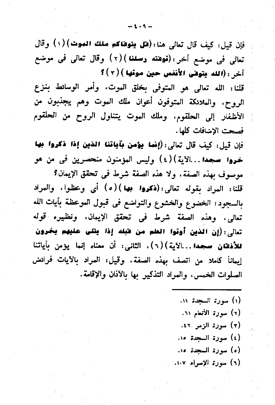 الثانى: أن معناه إنما يؤمن بآياتنا إيماناً كاملا من اتصف بهذه الصفة، وقيل: المراد بالأيات فرائض الصلوات الخمس، والمراد التذكير بها بالآذان والإقامة.