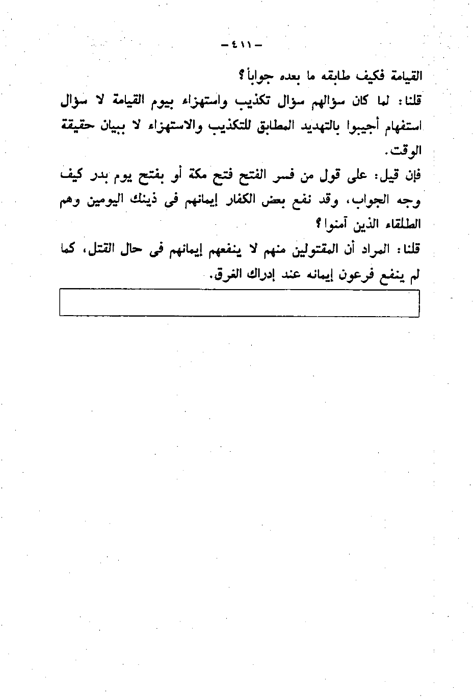 فإن قيل: على قول من فسر الفتح فتح مكة أو بفتح يوم بدر كيف وجه الجواب، وقد نفع بعض الكفار، إيمانهم في ذينك اليومين وهم الطلقاء الذين آمنوا؟