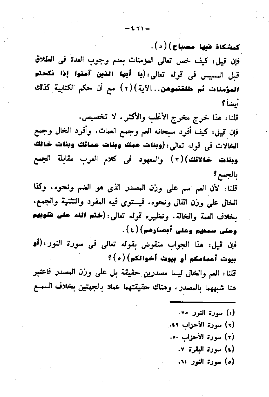 فإن قيل: هذا الجواب منقوض بقوله تعالى في سورة النور: (أَوْ بُيُوتِ أَعْمَامِكُمْ أَوْ بُيُوتِ عَمَّاتِكُمْ أَوْ بُيُوتِ أَخْوَالِكُمْ) ؟