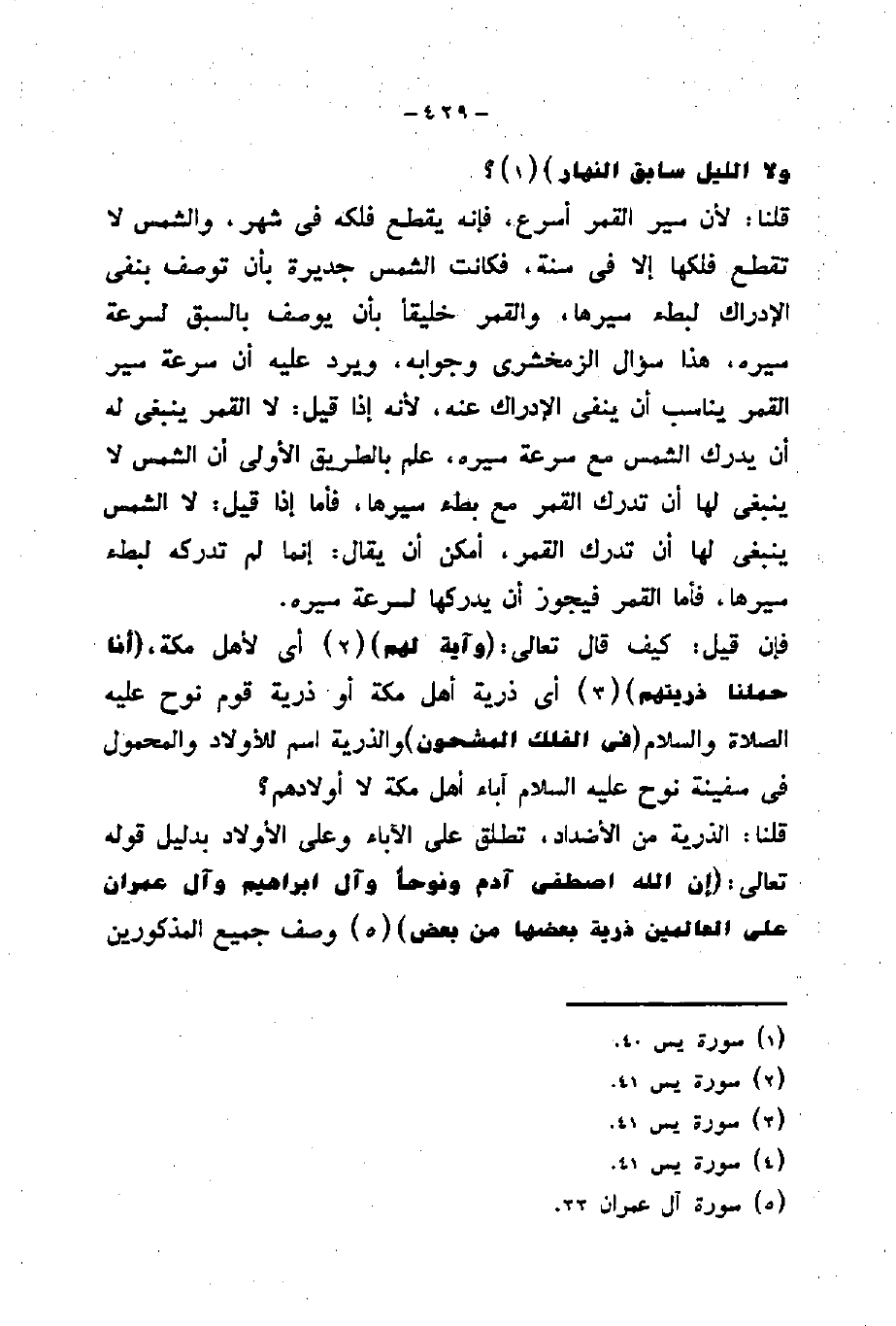 أن يدرك الشمس مع سرعة سيره، علم بالطربق الأولى أن الشمس لا ينبغى لها أن تدرك القمر مع بطء سيرها، فأما إذا قيل: لا الشمس