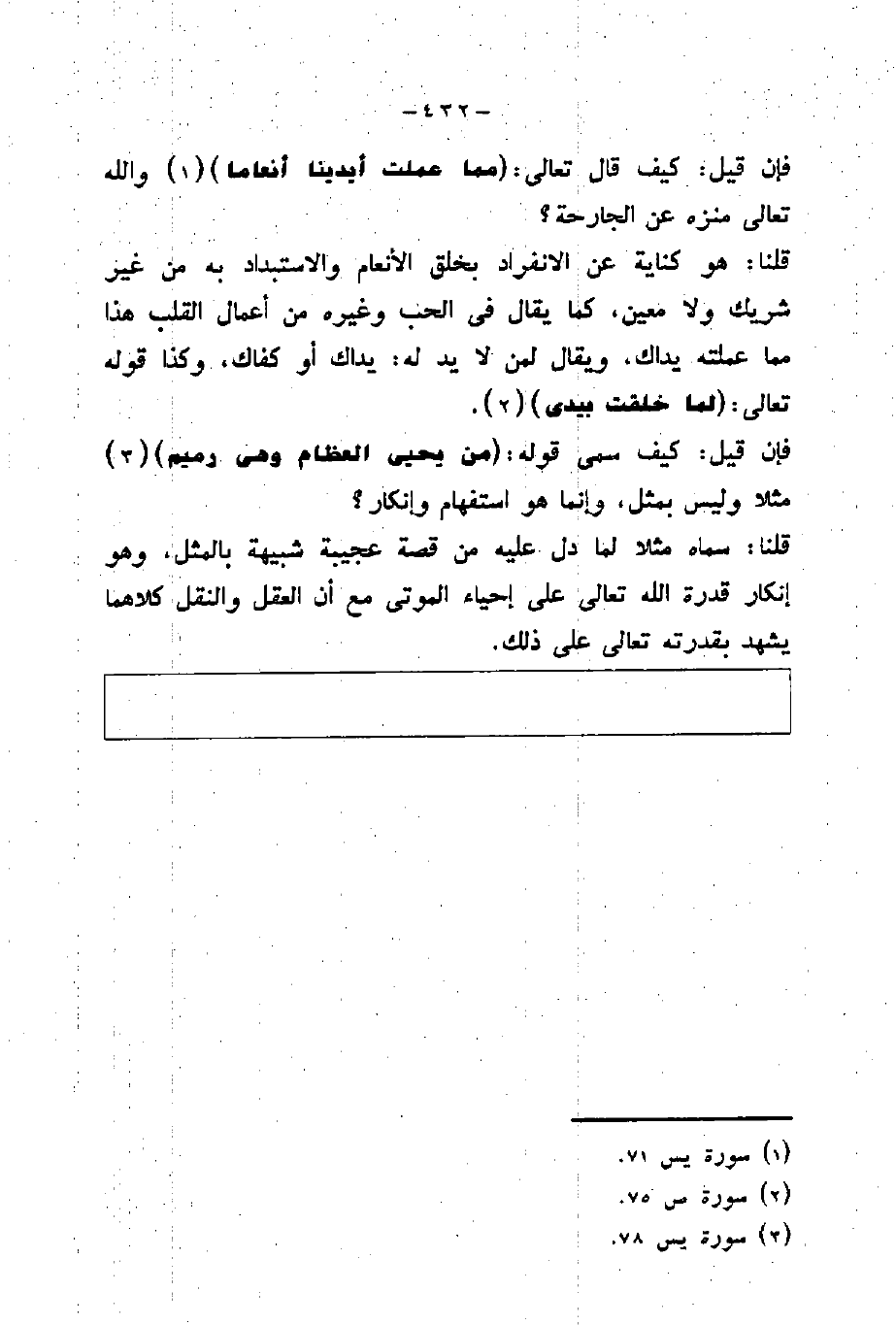 قلنا: هو كناية عن الانفراد بخلق الأنعام والاستبداد به من غير شريك ولا معين، كما يقال في الحب وغيره من أعمال القلب هذا مما عملته يداك، ويقال لمن لا يد له: يداك أو كفاك، وكذا قوله تعالى: (خَلَقْتُ بِيَدَيَّ) .