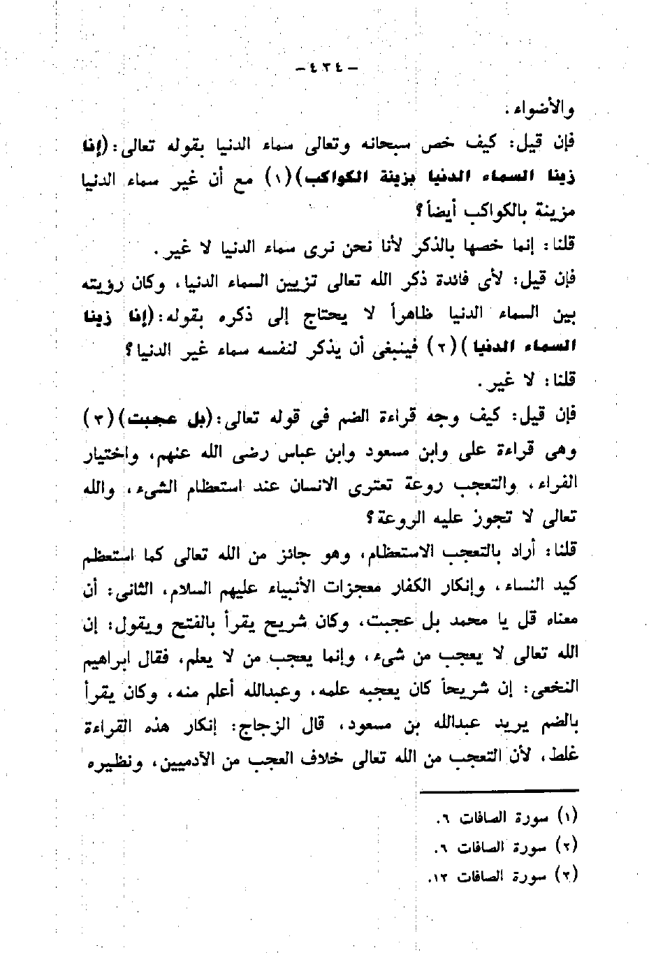 فإن قيل: كيف وجه قراءة الضم في قوله تعالى: (بَلْ عَجِبْتَ) وهى قراءة على وابن مسعود وابن عباس رضى الله عنهم، واختيار الفراء، والتعجب روعة تعترى الإنسان عند استعظام الشيء، والله تعالى لا تجوز عليه الروعة؟