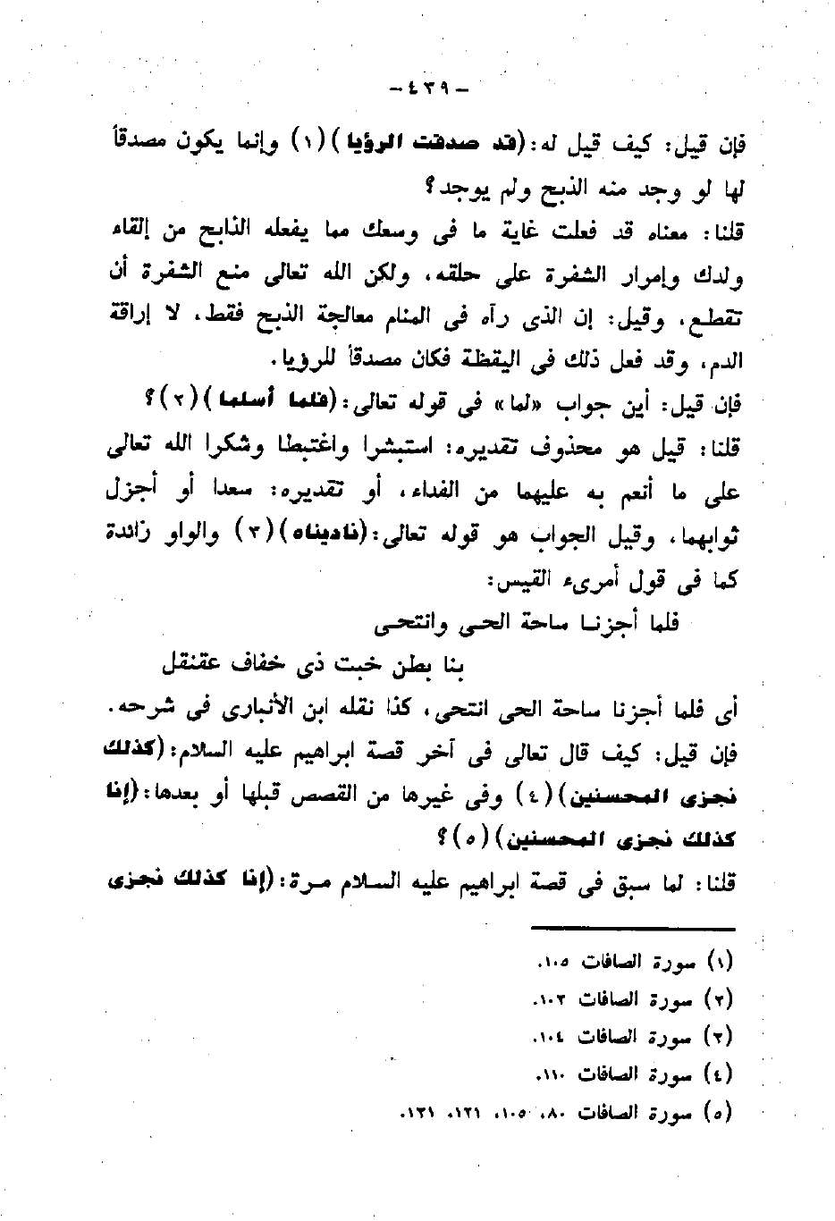 قلنا: معناه قد فعلت غاية ما في وسعك مما يفعله الذابح من إلقاء ولدك وامرار ألشفرة على حلقه، ولكن الله تعالى منع الشفرة أن تقطع، وقيل: إن الذي رآه في المنام معالجة الذبح فقط، لا إراقة الدم، وقد فعل ذلك في اليقظة فكان مصدقاً للرؤيا.