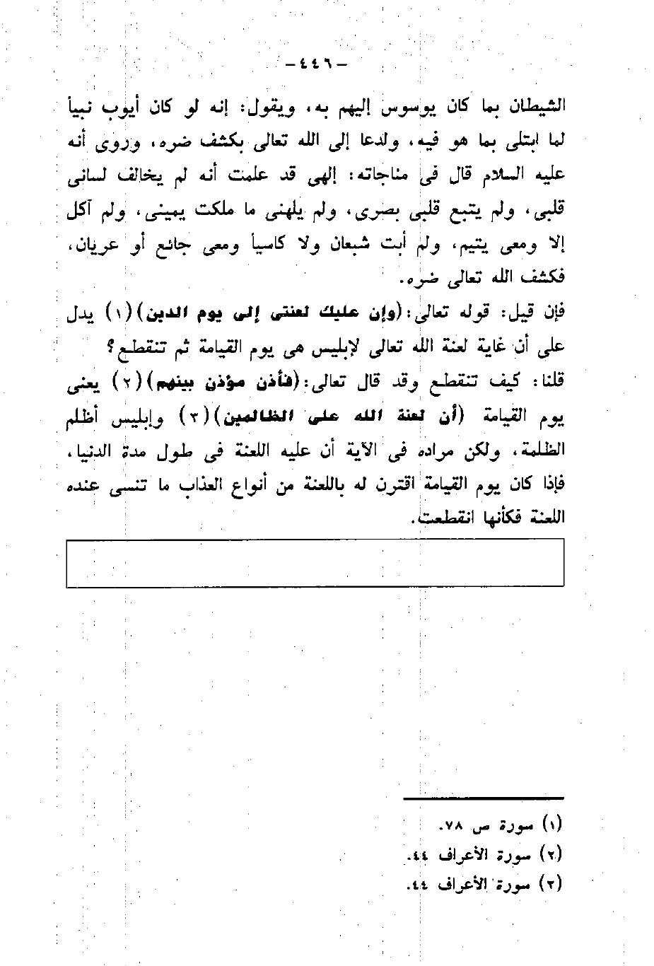 فإن قيل: قوله تعالى: (وَإِنَّ عَلَيْكَ لَعْنَتِي إِلَى يَوْمِ الدِّينِ) يدل على أن غاية لعنة الله تعالى لإبليس هى يوم القيامة ثم تنقطع؟