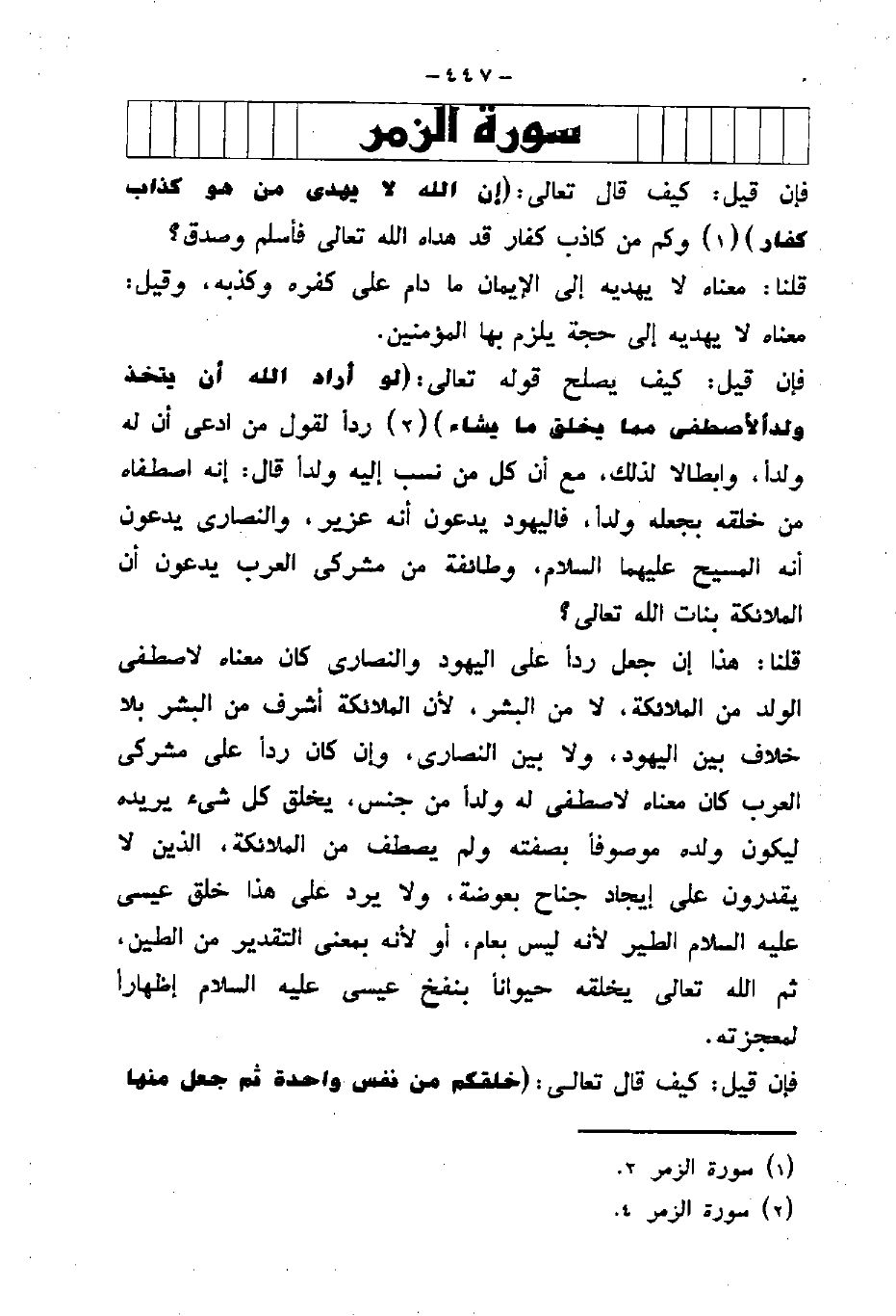 فإن قيل: كيف يصلح قوله تعالى: (لَوْ أَرَادَ اللَّهُ أَنْ يَتَّخِذَ وَلَدًا لَاصْطَفَى مِمَّا يَخْلُقُ مَا يَشَاءُ) رداً لقول من ادعى أن له ولداً، وإبطالاً لذلك، مع أن كل من نسب إليه ولداً قال: إنه اصطفاه من خلقه بجعله ولدا، فاليهود يدعون أنه عزير، والنصارى يدعون أنه المسيح عليهما السلام وطائفة من مشركى العرب يدعون أن الملآئكة بنات الله تعالى؟