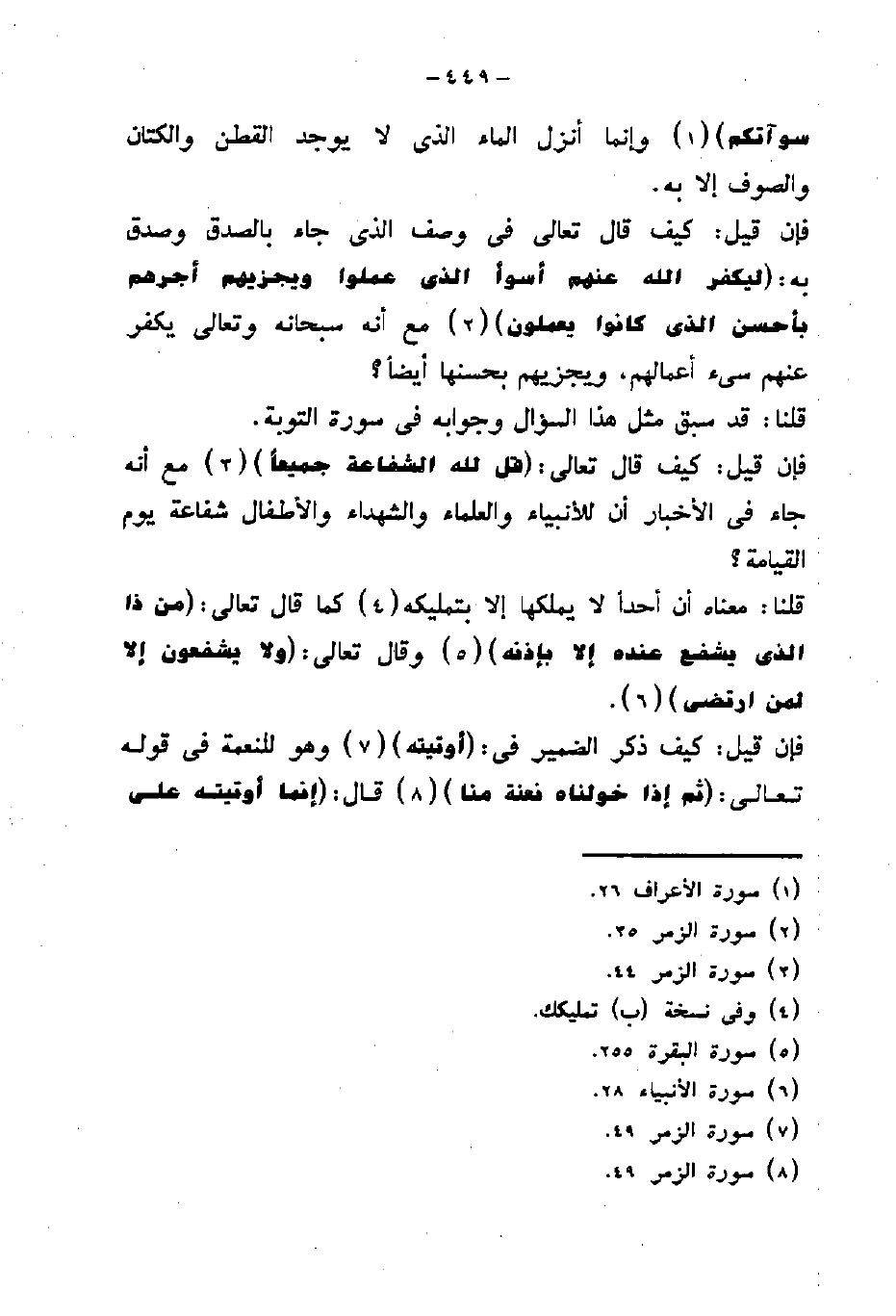 قلنا: قد سبق مثل هذا السؤال وجوابه في سورة التوبة.