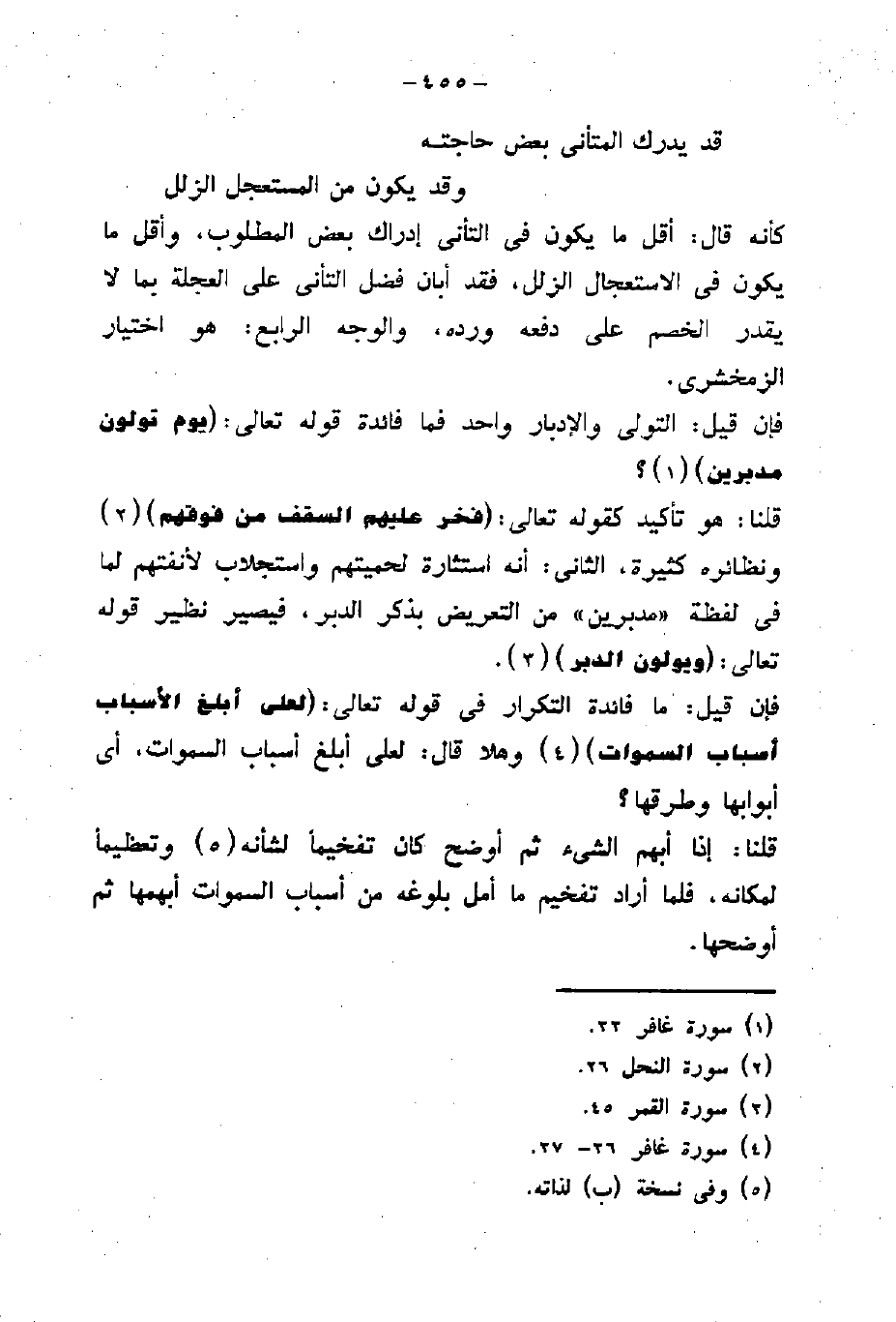 كأنه قال: أقل ما يكون في التأنى إدراك بعض المطلوب، وأقل ما يكون في الإستعجال الزلل، فقد أبان فضل التأنى على العجلة بما لا يقدر الخصم على دفعه ورده، والوجه الرابع: هو اختيار الزمخشري.