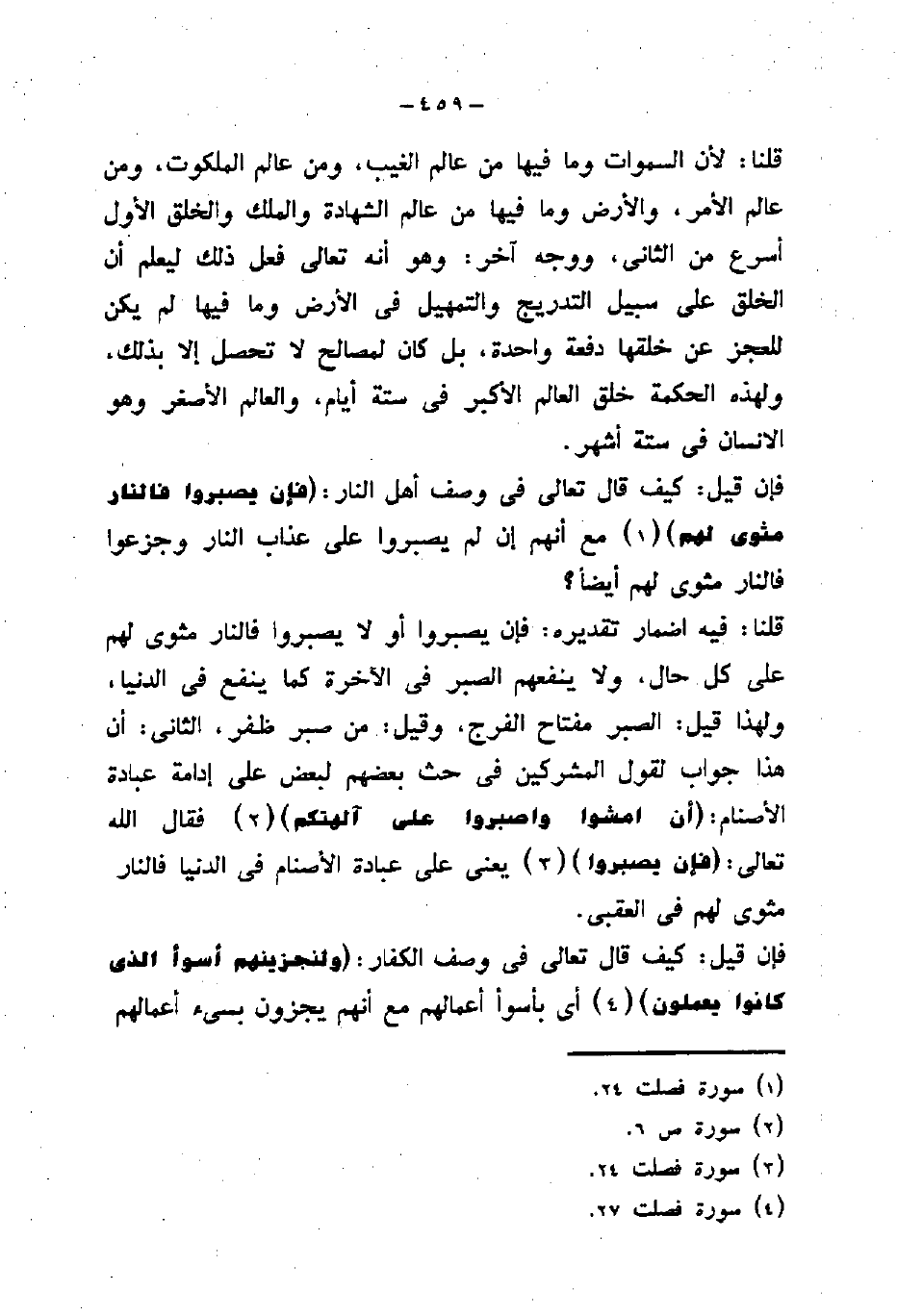 الثانى: أن هذا جواب لقول المشركين في حث بعضهم لبعض على إدامة عبادة الأصنام: (أَنِ امْشُوا وَاصْبِرُوا عَلَى آلِهَتِكُمْ) فقال الله تعالى: (فَإِنْ يَصْبِرُوا) يعنى على عبادة الأصنام في الدنيا فالنار مثوى لهم في العقبى.