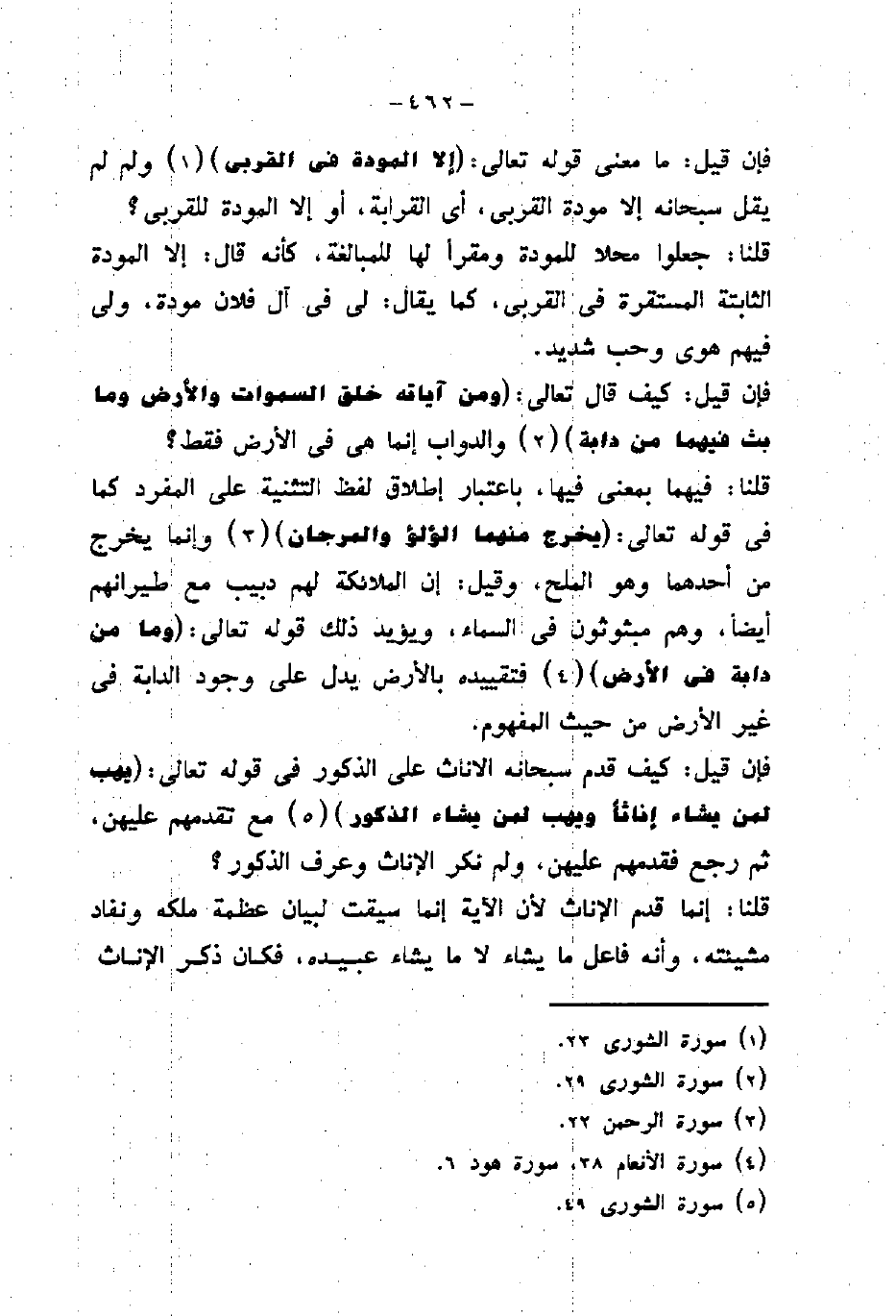 فإن قيل: ما معنى قوله تعالى: (إِلَّا الْمَوَدَّةَ فِي الْقُرْبَى) ولم لم يقل سبحانه إلا مودة القربى، أي القرابة، أو إلا المودة للقربى؟