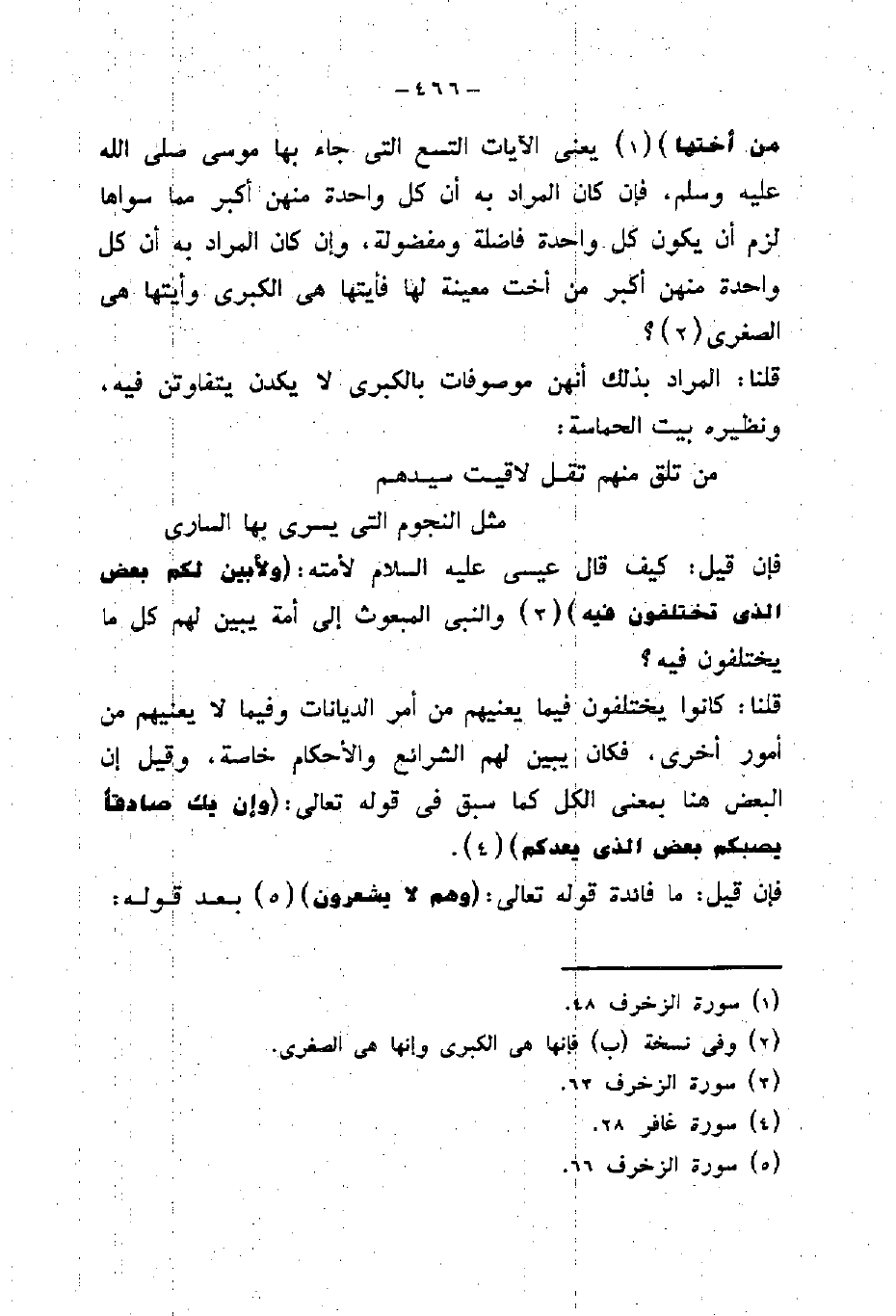 يعنى الآيات التسع التى جاء بها موسى صلى الله عليه وسلم، فإن كان المراد به أن كل واحدة منهن أكبر مما سواها لزم أن يكون كل واحدة فاضلة ومفضولة، وإن كان المراد به أن كل