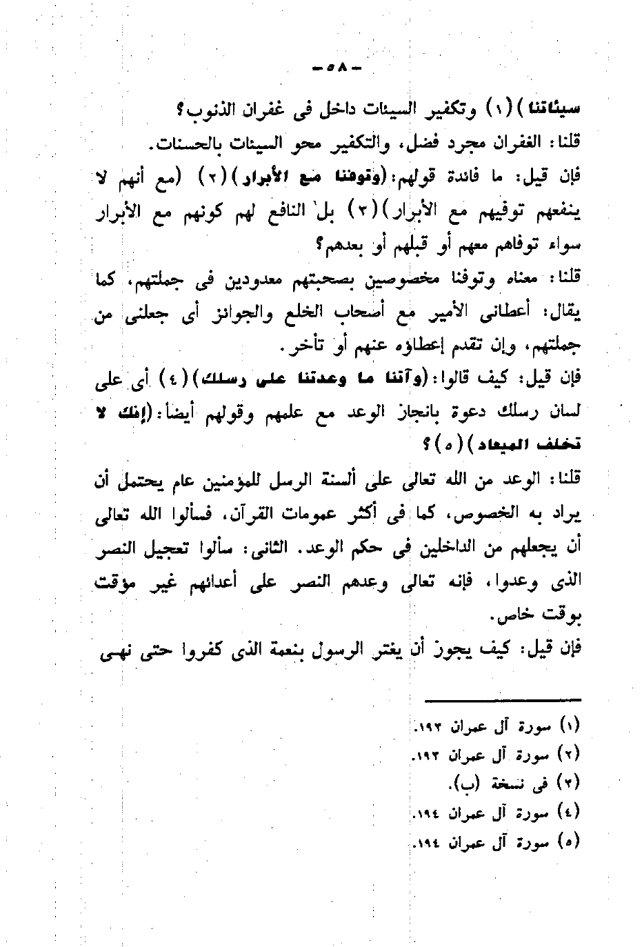 قلنا: الوعد من الله تعالى على ألسنة الرسل للمؤمنين عام يحتمل أن يراد به الخصوص، كما في أكثر عمومات القرآن، فسألوا الله تعالى أن يجعلهم من الداخلين في حكم الوعد الثانى: سألوا تعجيل النصر