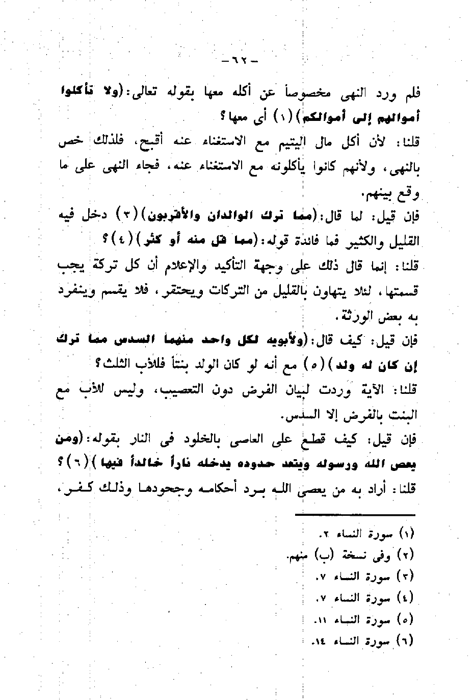 قلنا: إنما قال ذلك على وجهة التأكيد والإعلام أن كل تركة يجب قسمتها، لئلا يتهاون بالقليل من التركات ويحتقر، فلا يقسم وينفرد به بعض الورثة.