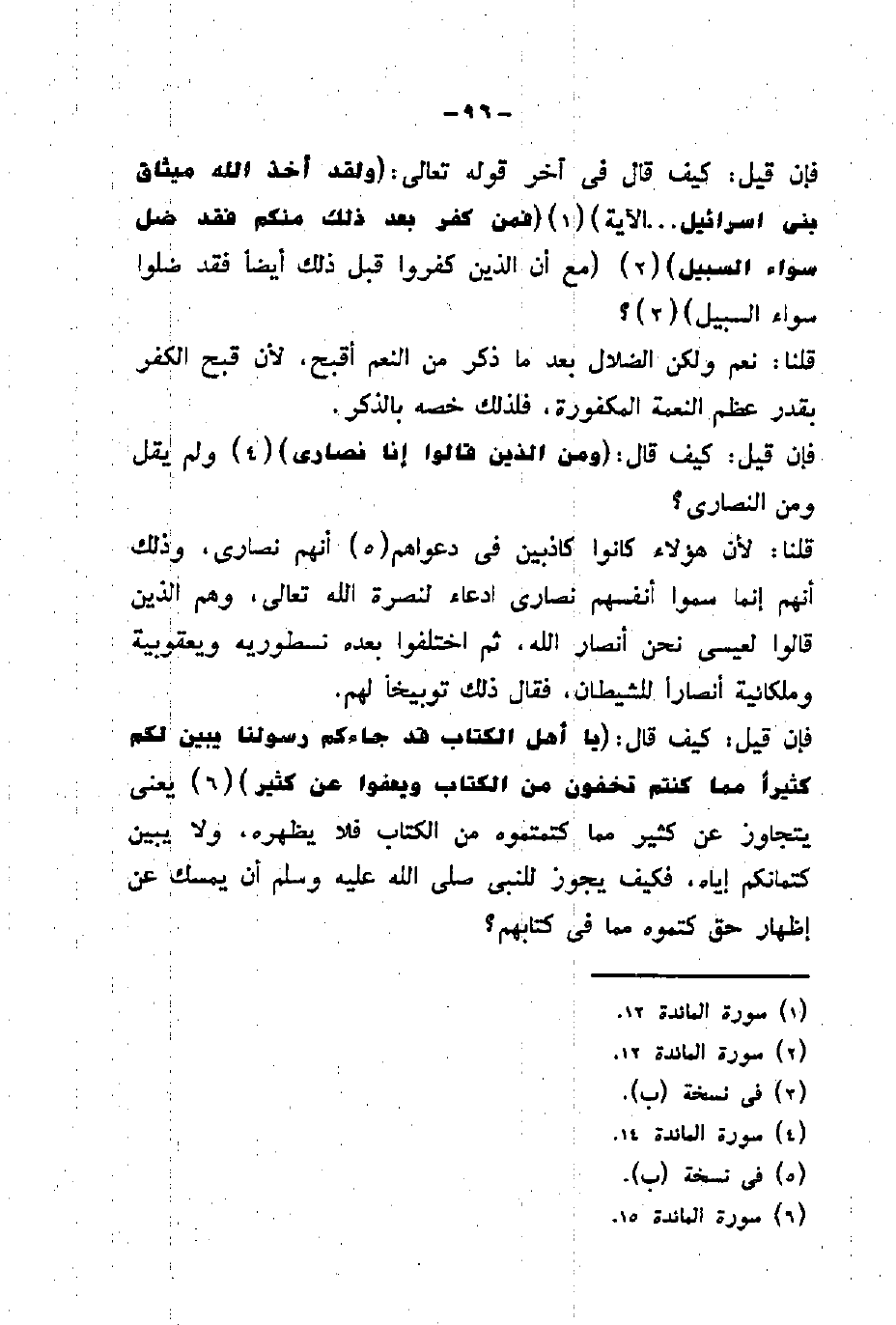 فإن قيل: كيف قال: (يَا أَهْلَ الْكِتَابِ قَدْ جَاءَكُمْ رَسُولُنَا يُبَيِّنُ لَكُمْ كَثِيرًا مِمَّا كُنْتُمْ تُخْفُونَ مِنَ الْكِتَابِ وَيَعْفُو عَنْ كَثِيرٍ)