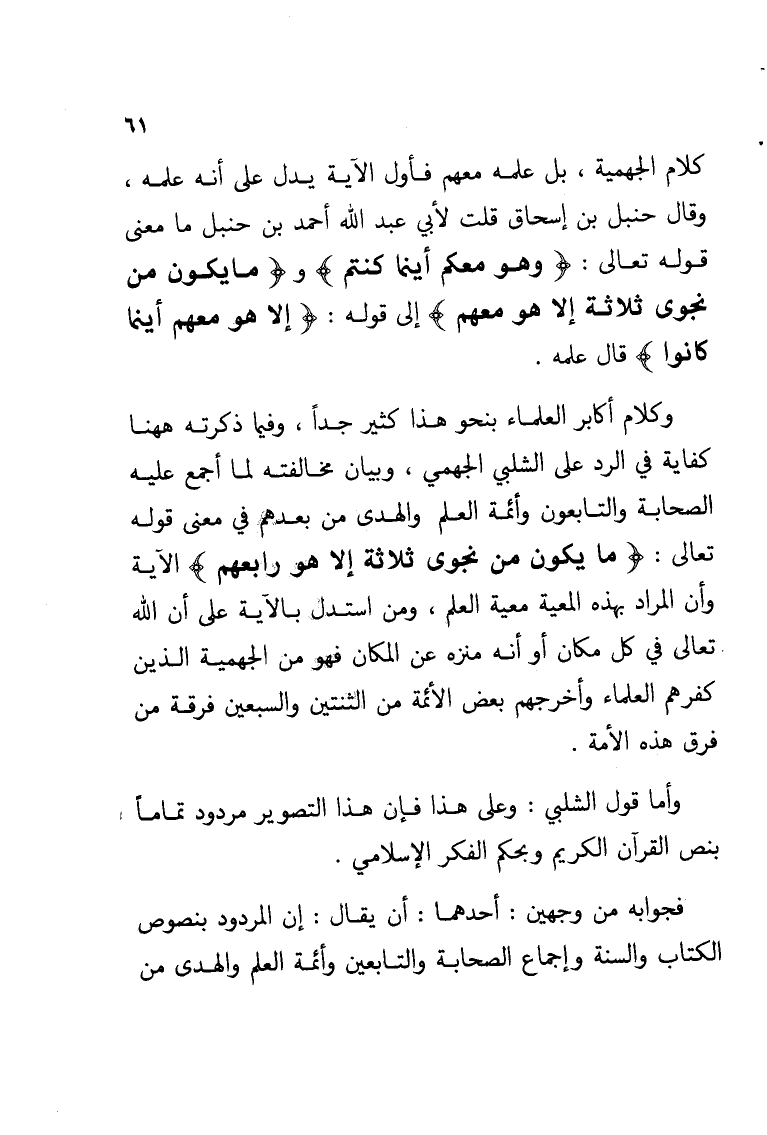 وكلام أكابر العلماء بنحو هذا كثير جداً, وفيما ذكرته ههنا كفاية في الرد على الشلبي الجهمي, وبيان مخالفته لما أجمع عليه الصحابة والتابعون وأئمة العلم والهدى من