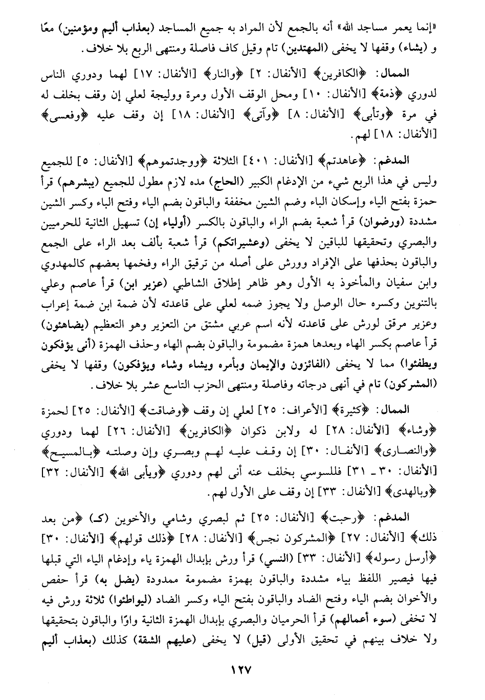 وياءات الإضافة فيها ثمان إِنِّي أَعْلَمُ* معا، وعَهْدِي الظَّالِمِينَ، بَيْتِيَ لِلطَّائِفِينَ* فَاذْكُرُونِي أَذْكُرْكُمْ، وَلْيُؤْمِنُوا بِي، مِنِّي إِلَّا، ورَبِّيَ الَّذِي. (¬1)