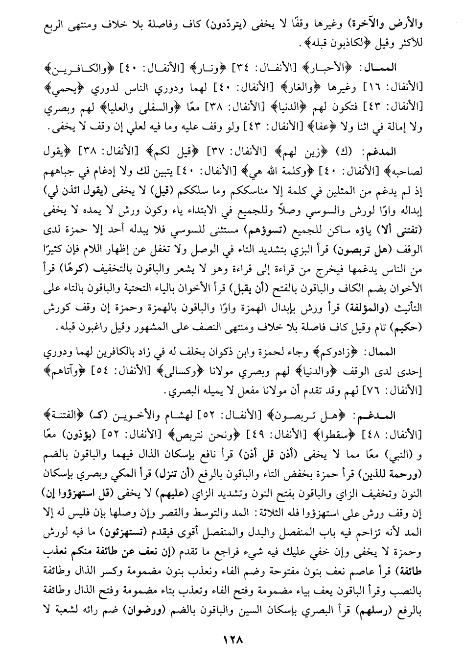 ومدغمها من الكبير أربع وثمانون، وقال الجعبري وقلده غيره ثمانون والصواب ما ذكرناه.