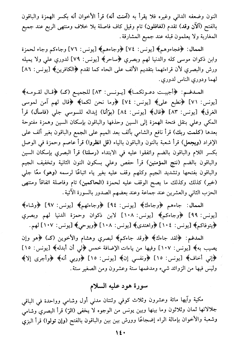 42 - أَنِّي أَخْلُقُ قرأ نافع بكسر همزة إن، والباقون بالفتح، وقرأ الحرميان والبصري بفتح الياء، والباقون بالإسكان، فإن قرأت من قوله تعالى ويعلمه، والوقف على ما قبله تام عند من قرأ ونعلمه بالنون، وعلى قراءة ويعلمه كاف لاحتمال عطفه على يبشرك إلى قوله بإذن الله، أو الثاني، والوقف عليهما كاف، ويجوز الوقف عن من ربكم على قراءة من كسر إن ولم يجز على قراءة الفتح فيجتمع فيه لقالون التوراة والمنفصل وميم الجمع، ولا يخفى أن لقالون في كل واحد منها وجهين فيجتمع له ثمانية أوجه، الأول: فتح التوراة، وقصر المنفصل وإسكان ميم الجمع.