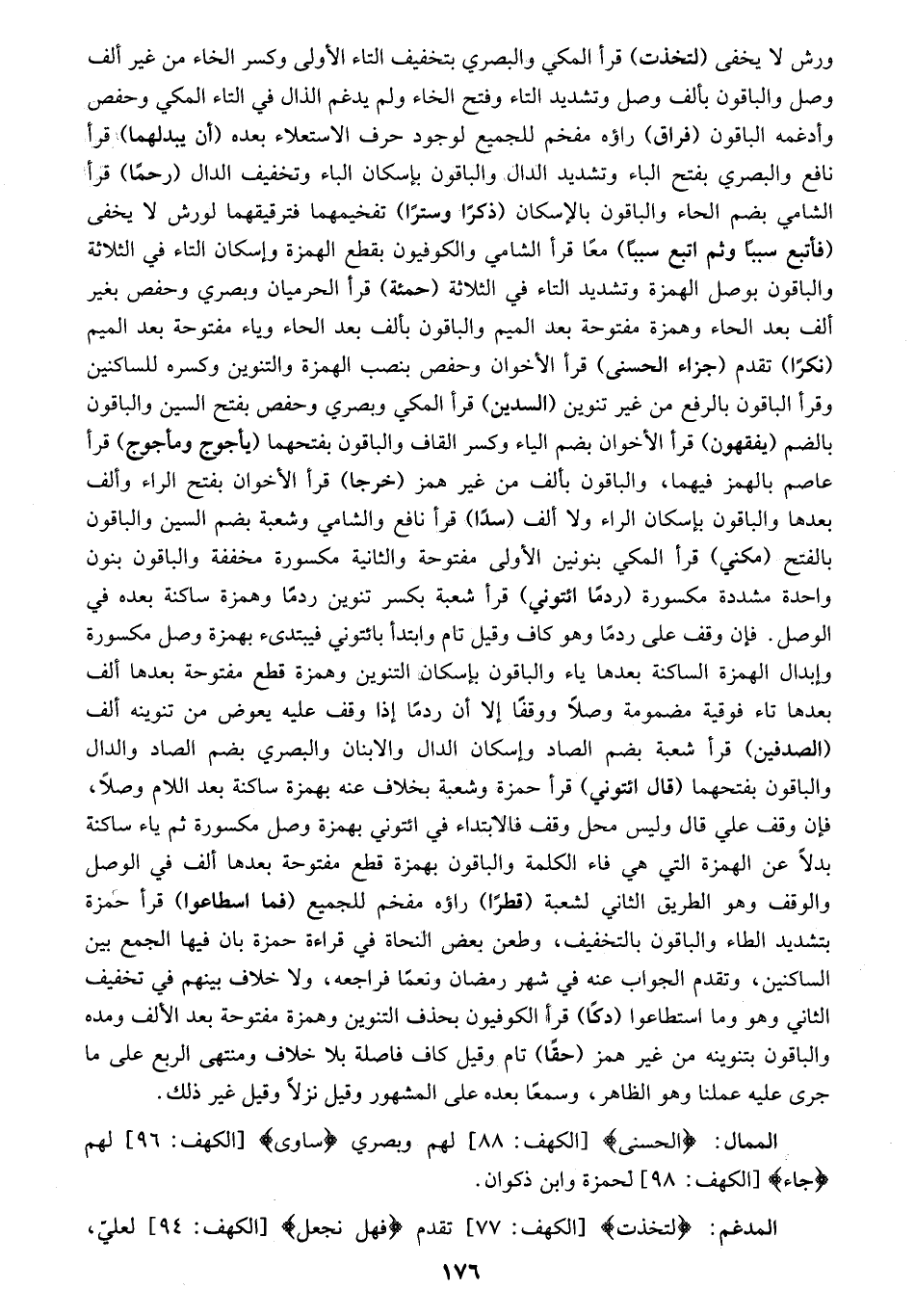 73 - غَيْرُ أُولِي الضَّرَرِ قرأ نافع وشامي وعلي بنصب الراء حال من القاعدون، والباقون بالرفع بدل منه.
