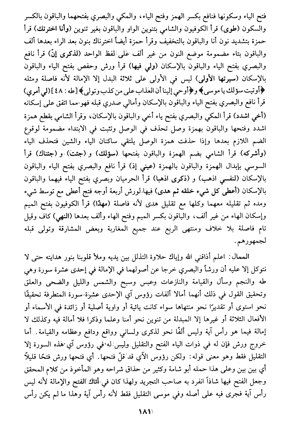 وَكَفى * وأُولِي* الْهُدَى* وكُسالى * لهم الدُّنْيا* معا لهم وبصري الْكافِرِينَ* الثلاثة ولِلْكافِرِينَ* معا والنار لهما ودوري. (¬1)