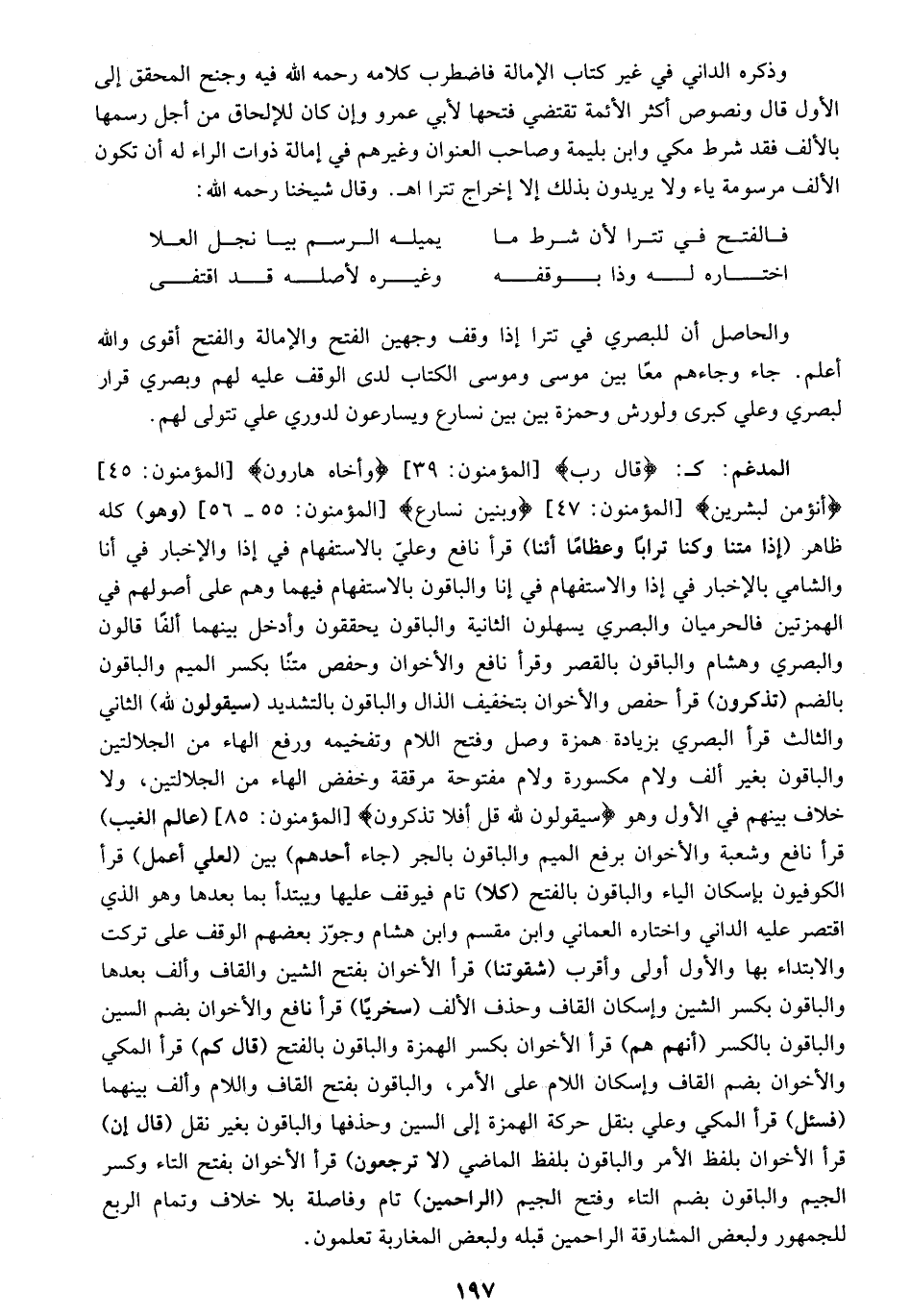 الوقف على بعيسى لهم وبصري جاؤُكَ* وَجاءَكَ وشاءَ* لحمزة وابن ذكوان التَّوْراةَ* الأربعة لنافع وحمزة بخلف عن قالون تقليلا ولابن ذكوان والبصري وعلي
