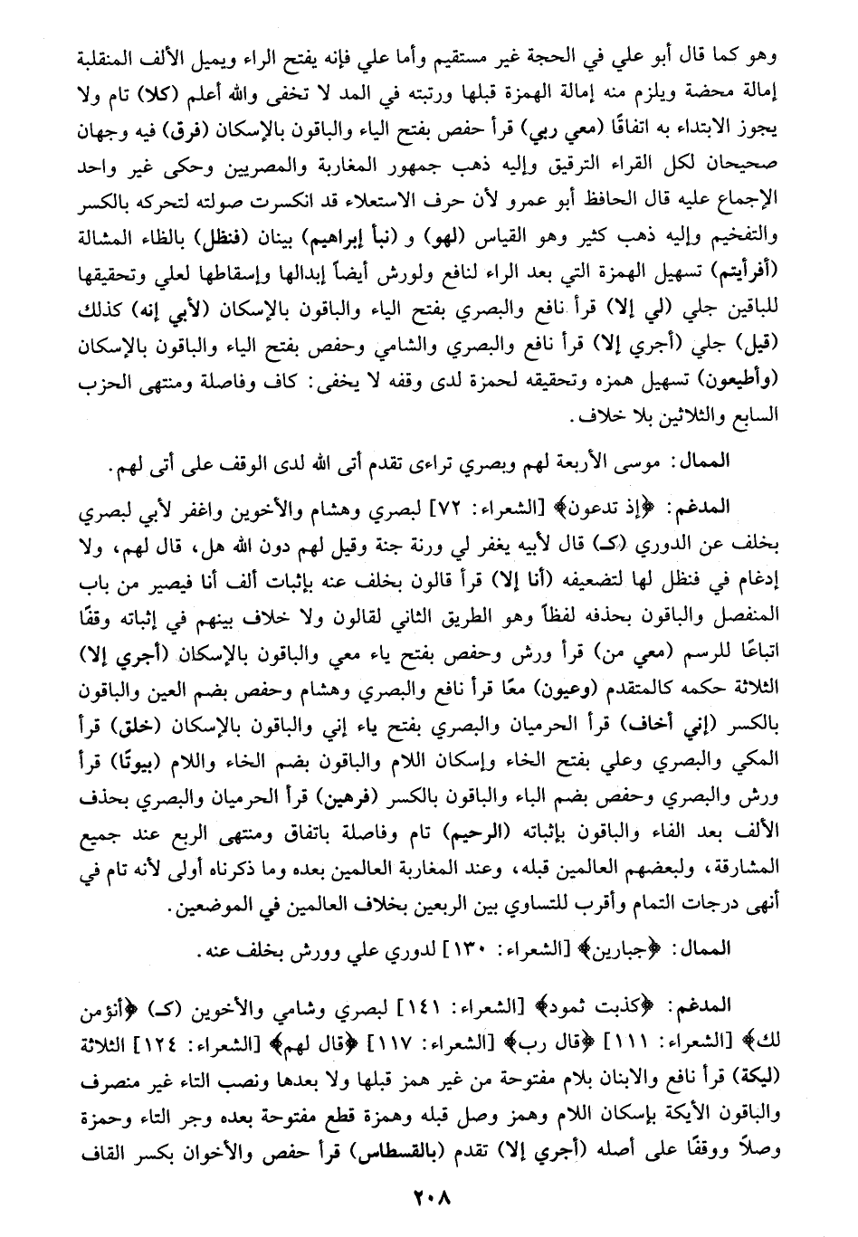 (¬3) النهار والنار بالإمالة لأبي عمرو، ودوري الكسائي، وبالتقليل لورش. (أخرى، وافترى، ولو ترى) بالإمالة لأبي عمرو، وحمزة، والكسائي؛ وبالتقليل لورش.