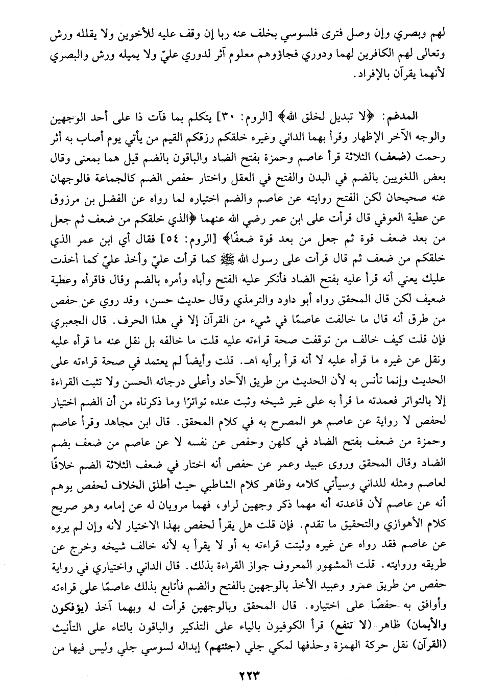 104 - زَيَّنَ لِكَثِيرٍ مِنَ الْمُشْرِكِينَ قَتْلَ أَوْلادِهِمْ شُرَكاؤُهُمْ قرأ الشامي بضم زاي زين وكسر يائه ورفع لام قتل ونصب دال أولادهم وخفض همزة شركائهم، والباقون بفتح الزاي والياء ونصب لام قتل وكسر دال أولادهم ورفع همزة شركاؤهم، وتكلم غير واحد من المفسرين والنحويين كابن عطية ومكي وابن أبي طالب والبيضاوي وابن جني والنحاس والزمخشري والفارسي في قراءة الشامي وضعفوها للفصل بين المضاف وهو قتل والمضاف إليه وهو شركائهم بالمفعول وهو أولادهم