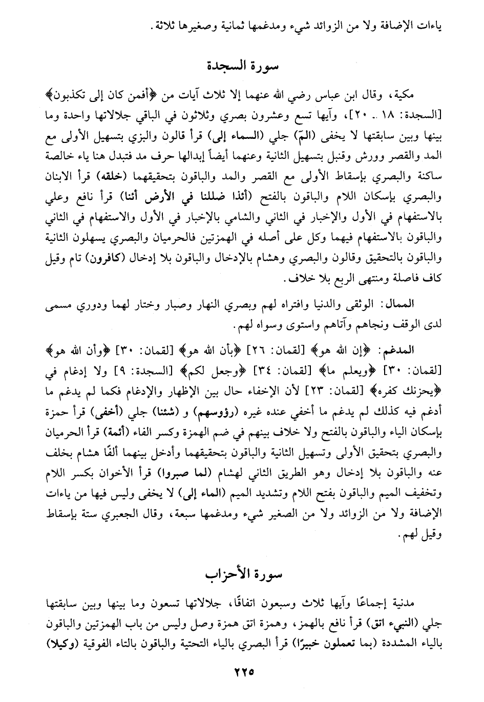 رأيا فاسدا واضح البطلان وهو أن القراءات كلها آحاد ولا متواتر فيها، ولذلك يطلق عنان القلم في تخطئة القراءة في بعض المواضع ولا يبالي بما يقول وما زعم أنه سمج مردود وهو فصيح شائع وأدلة ذلك من الشعر كثيرة ذكرها إمام النحاة أبو عبد الله محمد بن مالك في شرح الكافية عند قوله فيها بعد ذكر جواز الفصل: وحجتي قراءة ابن عامر وكم لها من عاضد وناصر فلا نطيل بها.