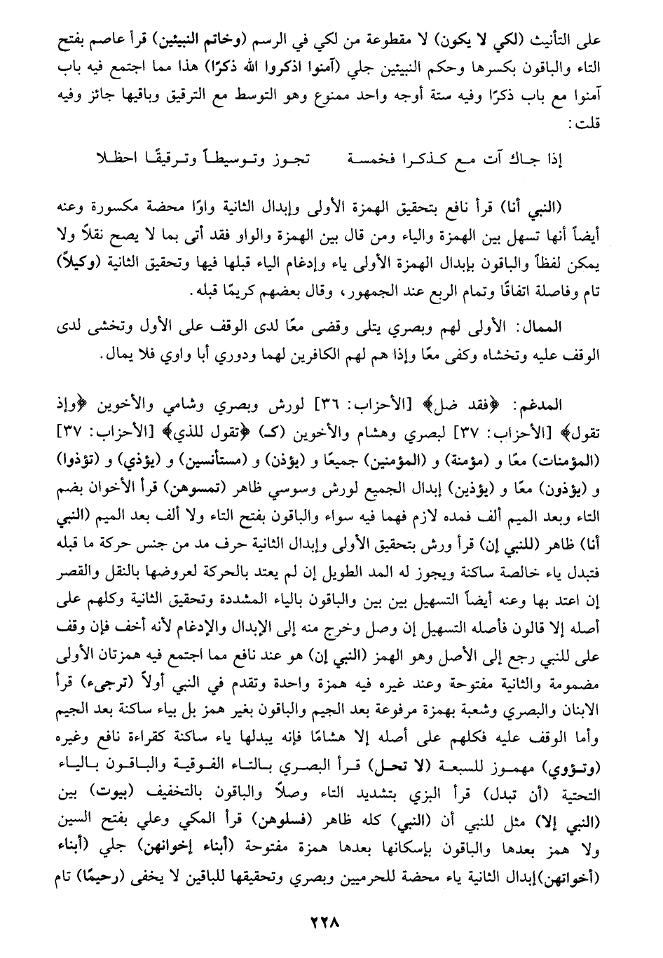 وأدلة هذا من أقوال الصحابة والتابعين وأئمة القراءة كثير تركناها خوف الإطالة، والله أسأل أن يعاملنا بفضله ولطفه آمين.