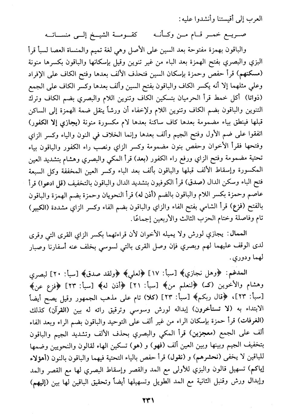121 - يَعْدِلُونَ* تام وقيل كاف وفاصلة بلا خلاف ومنتهى الربع لجمهورهم، وقال بعضهم تَخْرُصُونَ قبله.