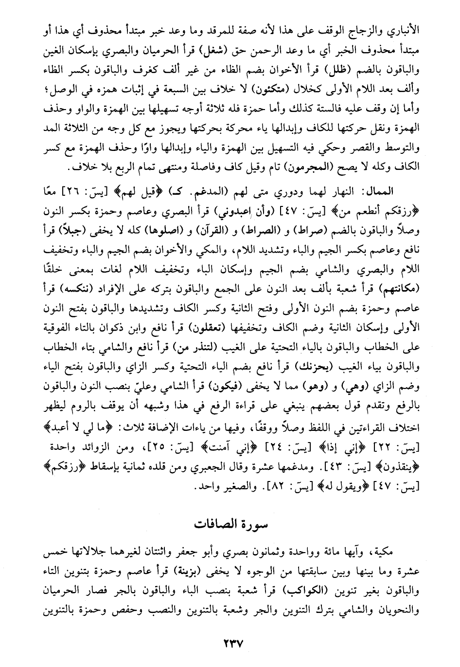 13 - تَعْلَمُونَ* تام وقيل كاف، فاصلة بلا خلاف، ومنتهى الربع على الأصح، وعند بعض تخرجون قبله، وعند بعض مهتدون بعده وقيل المسرفين.