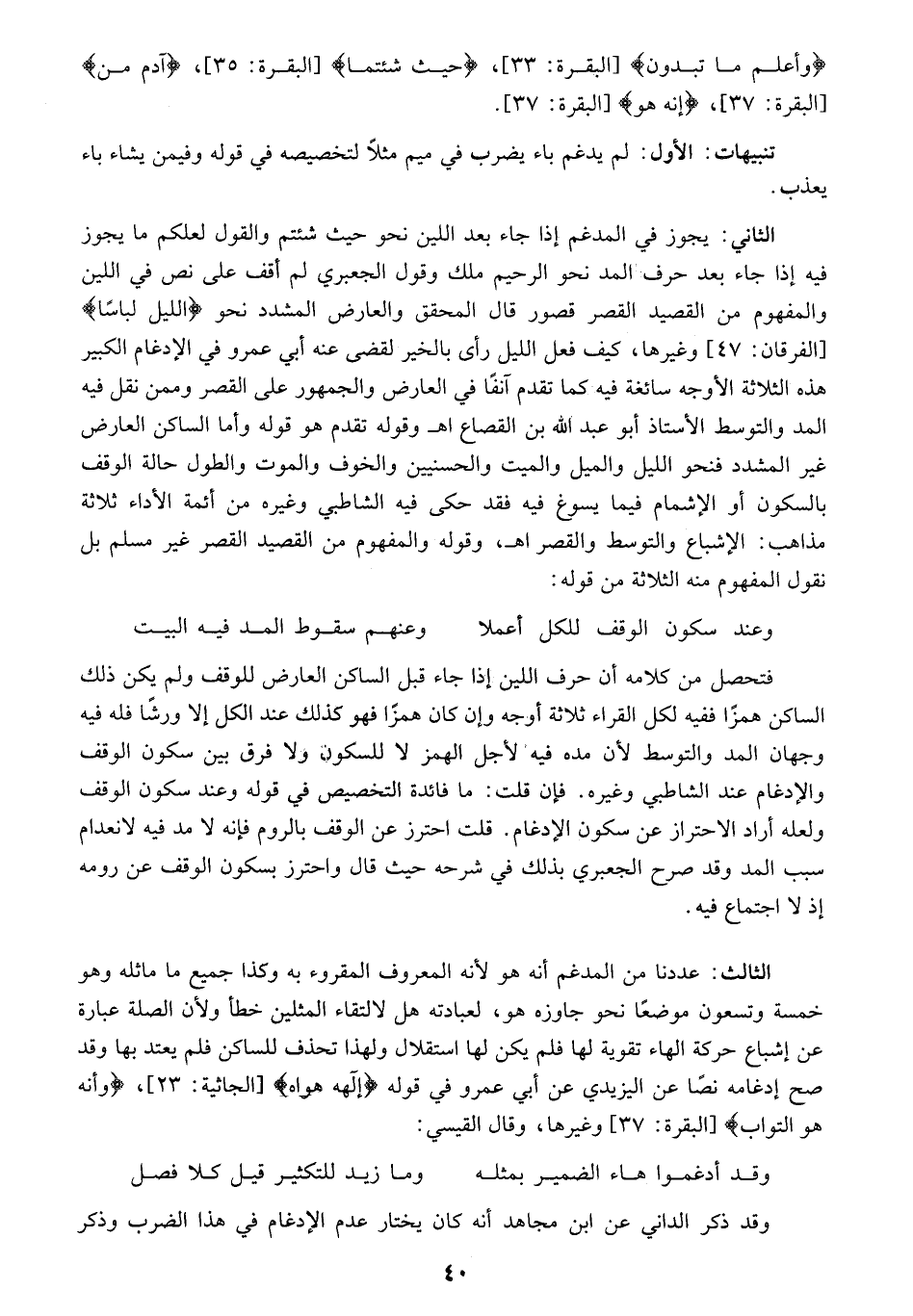 2 - الرَّحِيمِ* إذا وقف عليه وكذا ماثله ففيه ثلاثة العالمين، والروم وهو النطق ببعض الحركة، وقال بعضهم: هو تضعيف الصوت بالحركة حتى يذهب معظمها، وكلا القولين (¬1) واحد، ولا يكون إلا مع القصر.