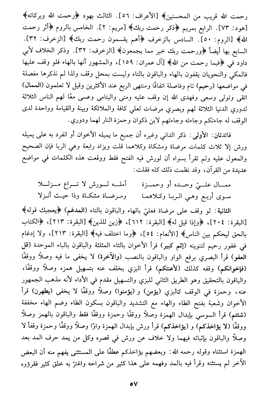 فإن قلت هذا القول محمل أي مطرح على ما فهم السخاوي وغيره من كلامه حيث جعلوا ألف أحملا للتثنية قلت: ما فهموه هو عند المحققين، وهم بين وغلط ظاهر ولو أراده لقال قيلا وأخملا والصواب أن ألف أخملا للإطلاق، وتم الكلام عند قوله وضم، وأن هذا الوجه من أصح الوجوه، روي عن حمزة بالنص الصريح من غير إشارة ولا تلويح.