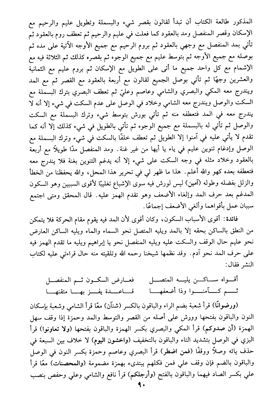 (¬3) من الملاحظ أن الإدغام في فَقَدْ ضَلَّ* هو من باب الإدغام الصغير لورش، وأبو عمرو، وابن عامر، وحمزة، والكسائي. والإدغام في تَبَيَّنَ لَهُمُ*، وكَذلِكَ قالَ*، يَحْكُمُ بَيْنَهُمْ*، أَظْلَمُ مِمَّنْ*، ويَقُولُ لَهُ*، الْعِلْمِ ما لَكَ* هو من باب الإدغام الكبير للسوسي.
