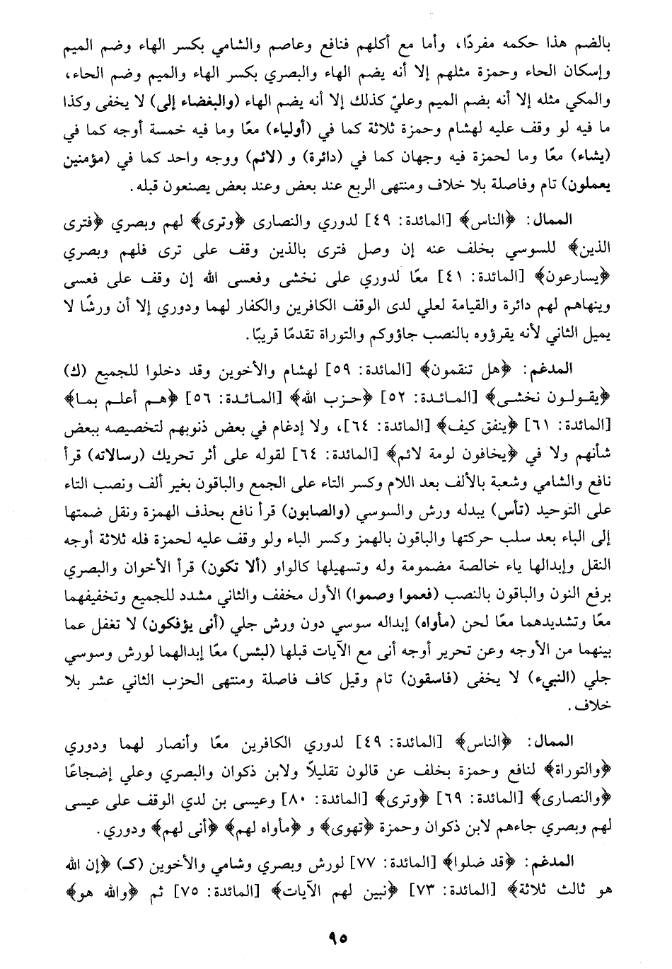 (ابتلى ومصلى) لدى الوقف و (وصى واصطفى) لهم النَّاسِ* معا لدوري النار لهما ودوري الدُّنْيا* ونَصارى * معا ومُوسى * وعِيسَى* لهم وبصري. (¬2)