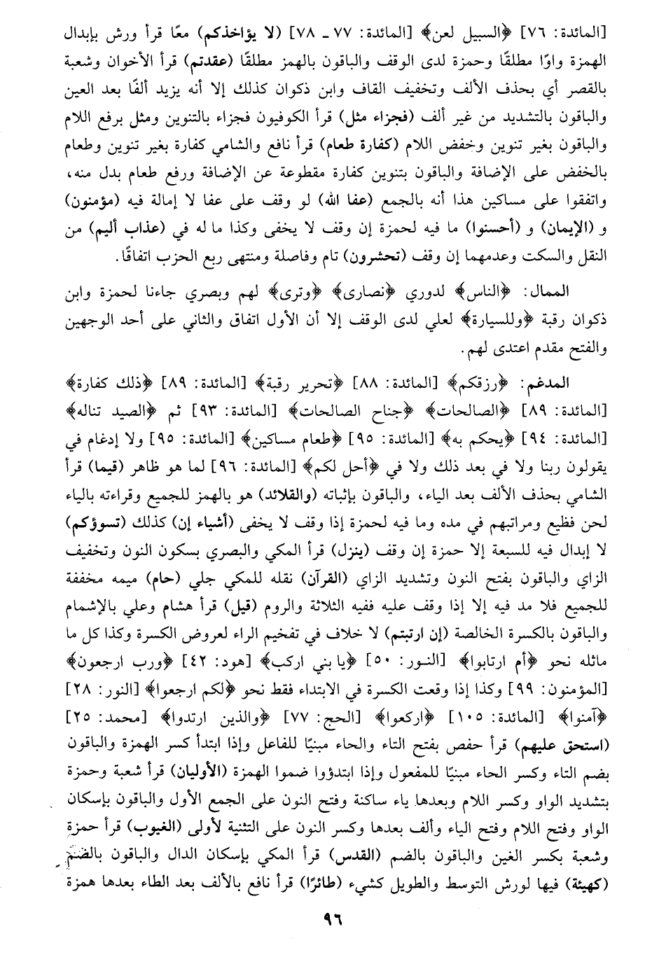 143 - يَشاءُ إِلى * قرأ الحرميان والبصري بتحقيق الأولى وتسهيل الثانية بينها وبين الياء، وعنهم إبدالها واوا محضة مكسورة، والباقون بتحقيقهما.