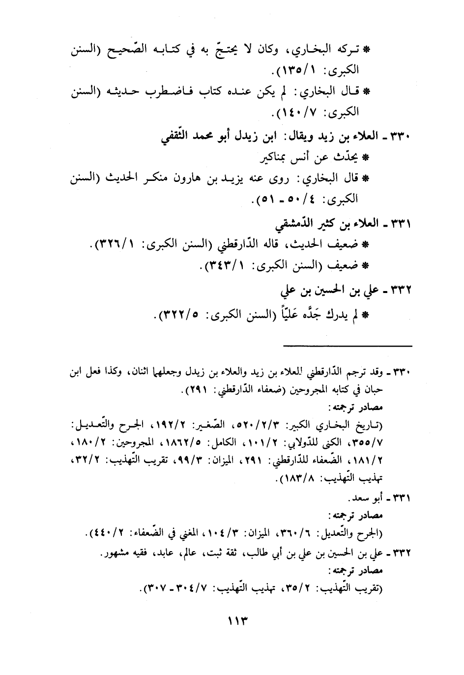 330 - وقد ترجم الدّارقطني للعلاء بن زيد والعلاء بن زيدل وجعلهما اثنان، وكذا فعل ابن حبان في كتابه المجروحين (ضعفاء الدّارقطني: 291).