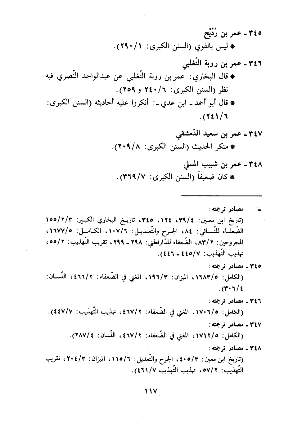 * قال البخاري: عمر بن روبة التّغلبي عن عبد الواحد النّصري فيه نظر (السنن الكبرى: 6/ 240 و 259).