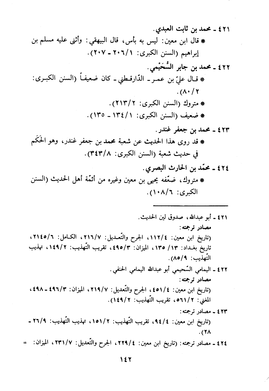 424 - مصادر ترجمته: (تاريخ ابن معين: 4/ 229، الجرح والتّعديل: 7/ 231، الميزان: =
