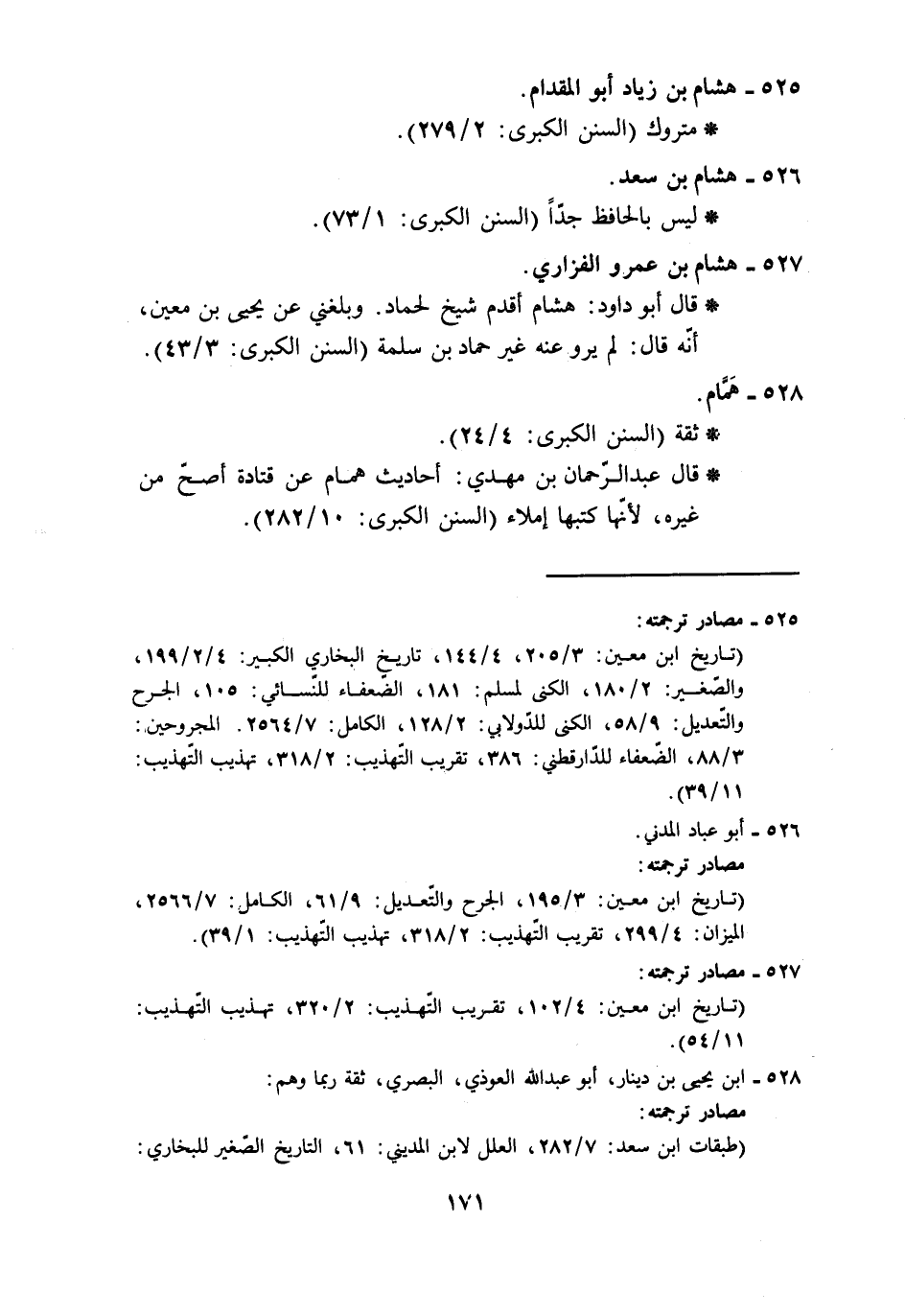 * قال أبو داود: هشام أقدم شيخ لحماد. وبلغني عن يحيى بن معين، أنّه قال: لم يرو عنه غير حماد بن سلمة (السنن الكبرى: 3/ 43).