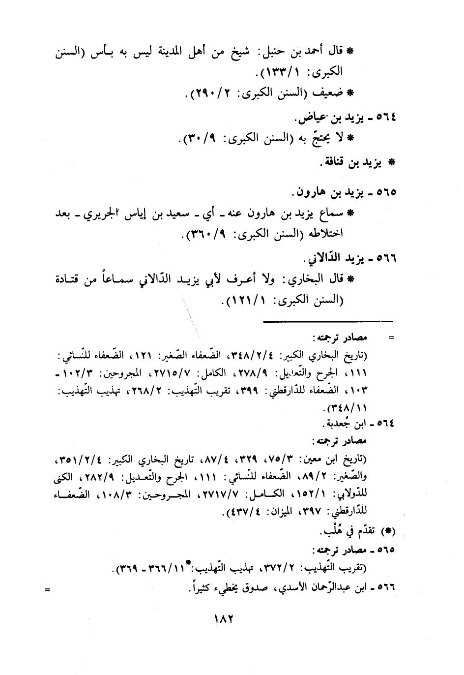 (تاريخ ابن معين: 3/ 75، 329، 4/ 87، تاريخ البخاري الكبير: 2/ 4/ 351، والصّغير: 2/ 89، الضّعفاء للنّسائي: 111، الجرح والتّعديل: 9/ 282، الكنى للدّولابي: 1/ 152، الكامل: 7/ 2717، المجروحين: 3/ 108، الضّعفاء للدّارقطني: 397، الميزان: 4/ 437).