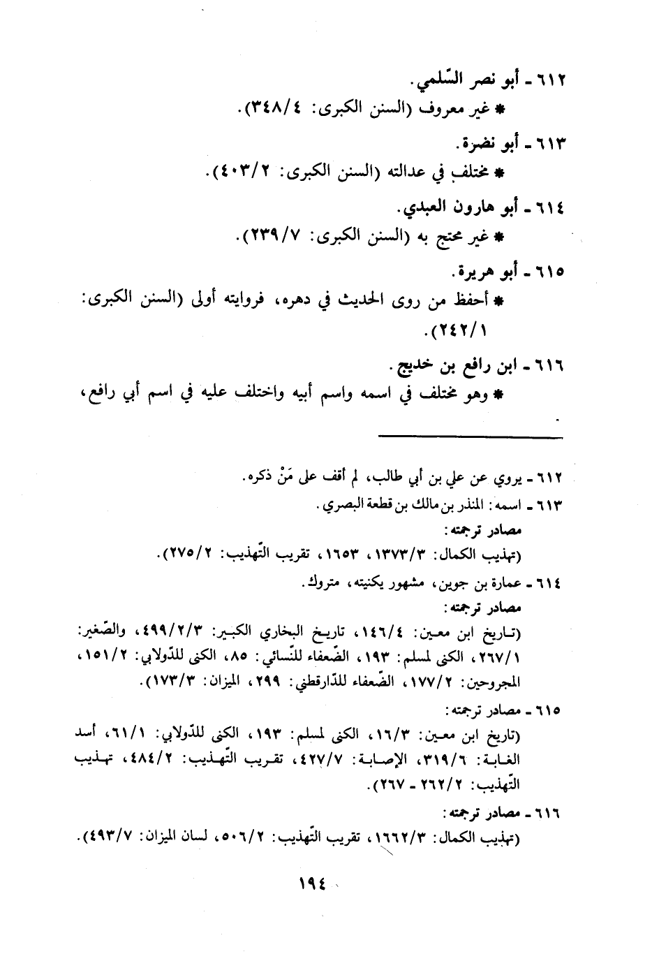 (تاريخ ابن معين: 4/ 146، تاريخ البخاري الكبير: 3/ 2/ 499، والصّغير: 1/ 267، الكنى لمسلم: 193، الضّعفاء للنّسائي: 85، الكنى للدّولابي: 2/ 151، المجروحين: 2/ 177، الضّعفاء للدّارقطني: 299، الميزان: 3/ 173).