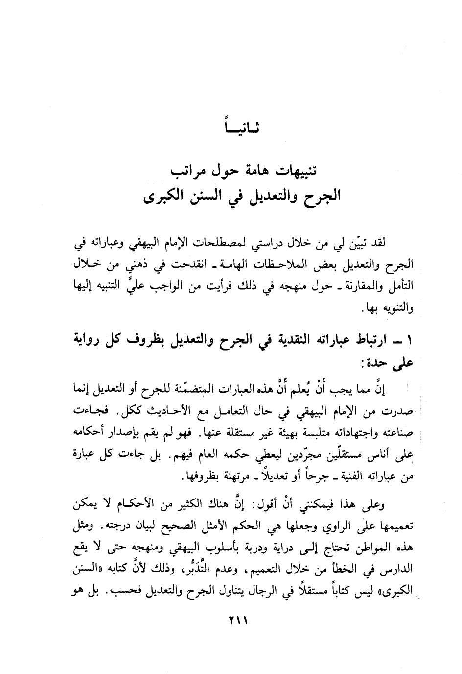 لقد تبيّن لي من خلال دراستي لمصطلحات الإِمام البيهقي وعباراته في الجرح والتّعديل بعض الملاحظات الهامة -انقدحت في ذهني من خلال التأمل والمقارنة- حول منهجه في ذلك فرأيت من الواجب عليَّ التنبيه إليها والتنويه بها.